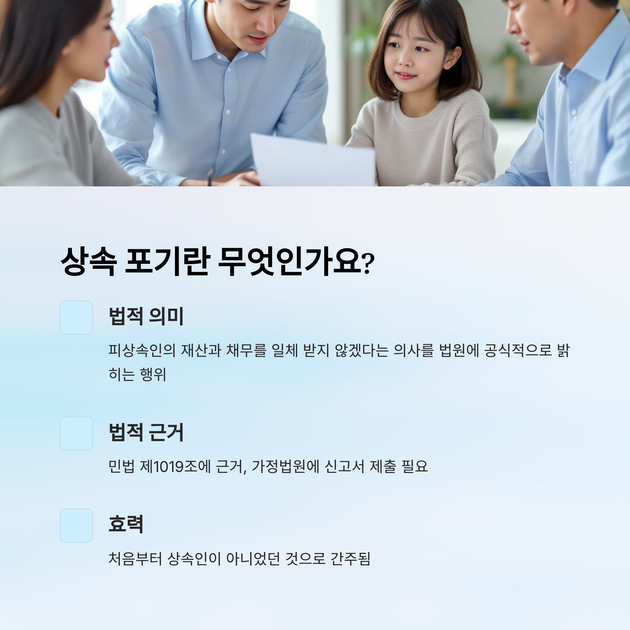 상속 포기는 단순히 ‘받지 않겠다’라는 의미를 넘어서 법적으로 매우 중요한 결정을 포함하고 있어요. 재산뿐 아니라 빚까지 함께 물려받는 경우가 많기 때문에, 이런 선택이 필요할 수 있답니다. 특히 부모나 가족이 갑작스럽게 돌아가신 상황이라면, 상속 포기에 대한 이해가 더욱 중요해요.