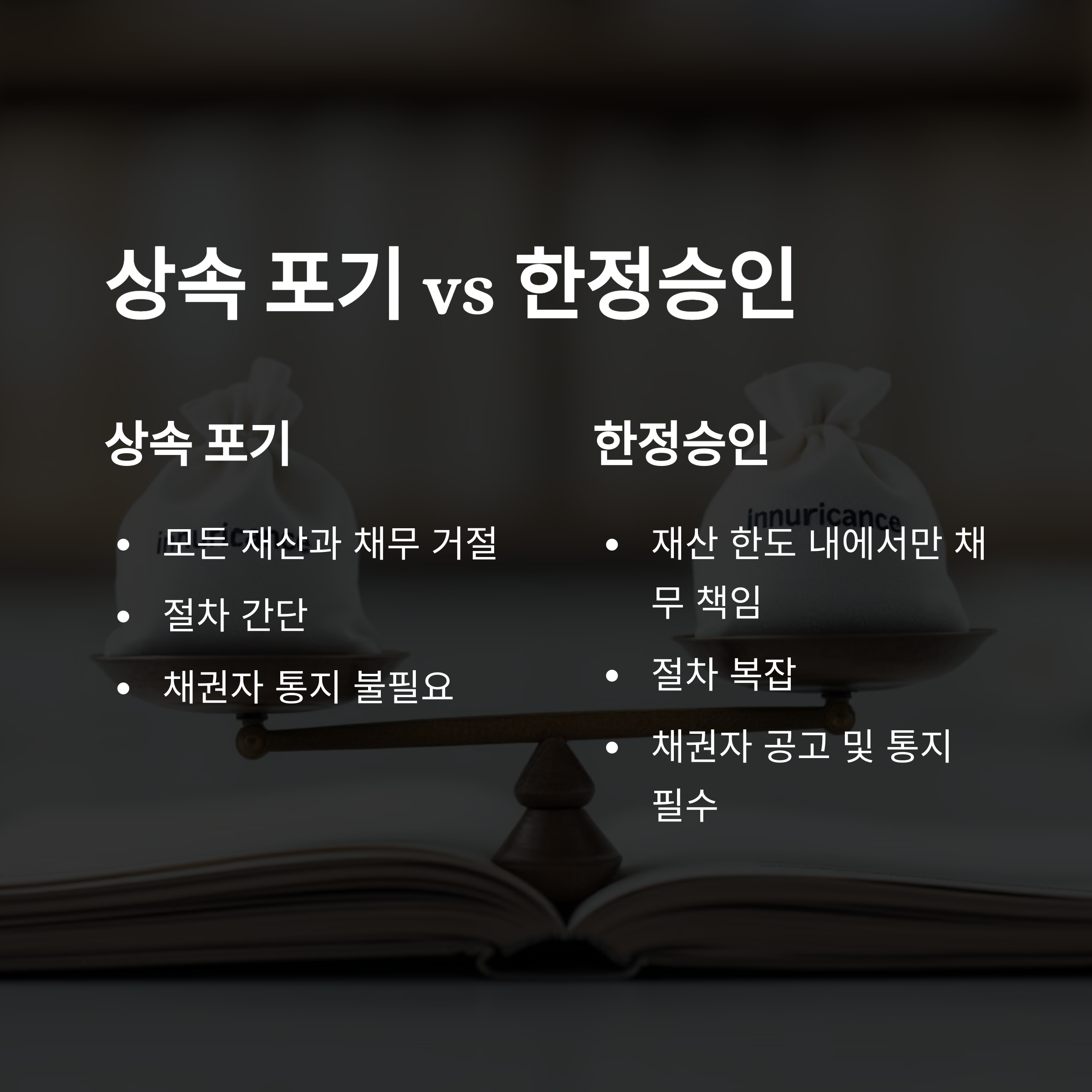 어떤 제도를 선택할지는 상황에 따라 다르지만, 상속 포기는 ‘완전 거절’, 한정승인은 ‘조건부 수락’이라는 점만큼은 꼭 기억해두면 좋아요. 특히 피상속인의 채무 규모가 모호할 경우 한정승인이 더 안전할 수 있어요.