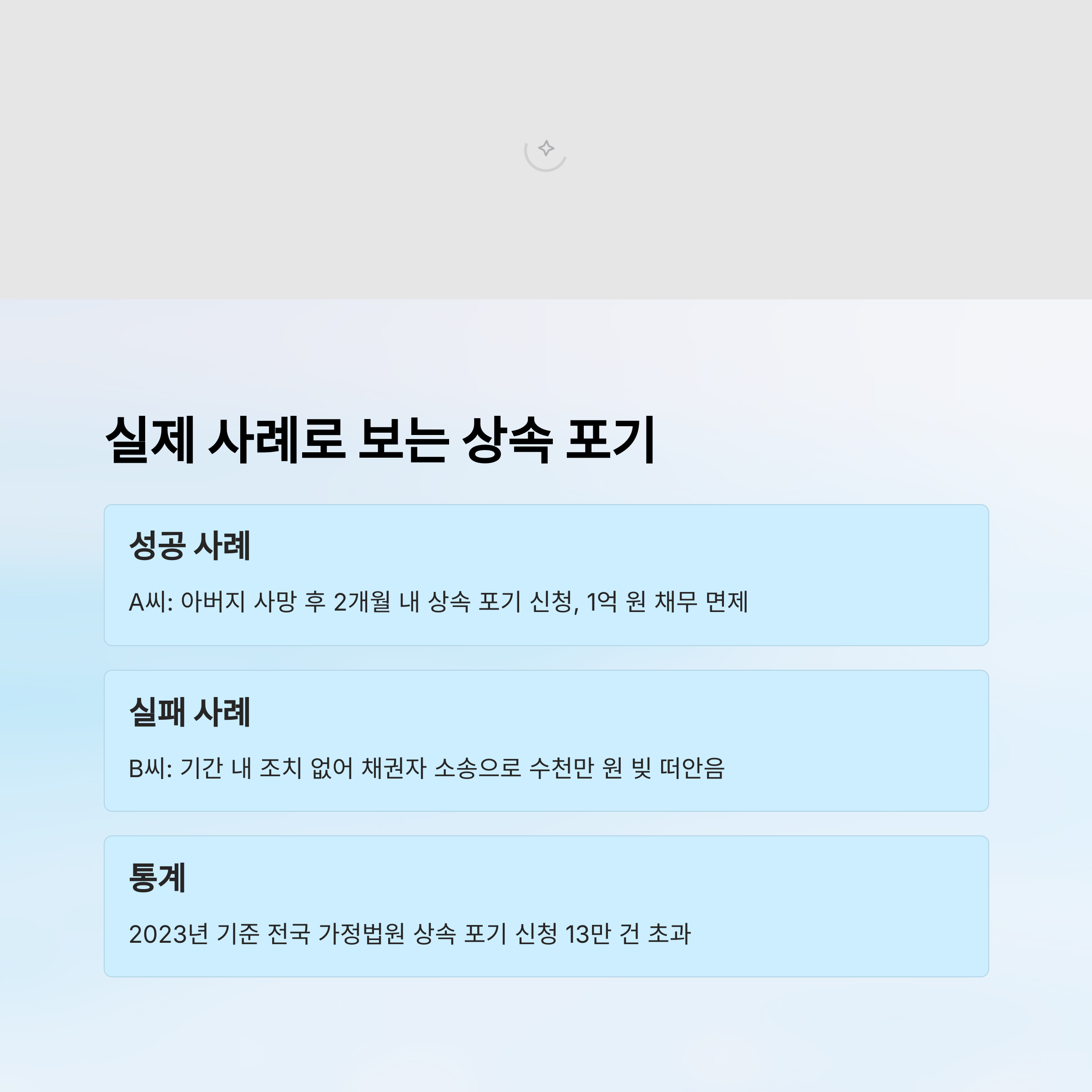 실제 사례를 보면, 상속 포기를 통해 부채로부터 벗어난 경우도 있고, 반대로 절차를 놓쳐 채무를 떠안은 경우도 있어요. 예를 들어, A씨는 아버지가 남긴 채무가 1억 원이라는 사실을 사망 후 2개월 뒤에야 알게 되었어요.