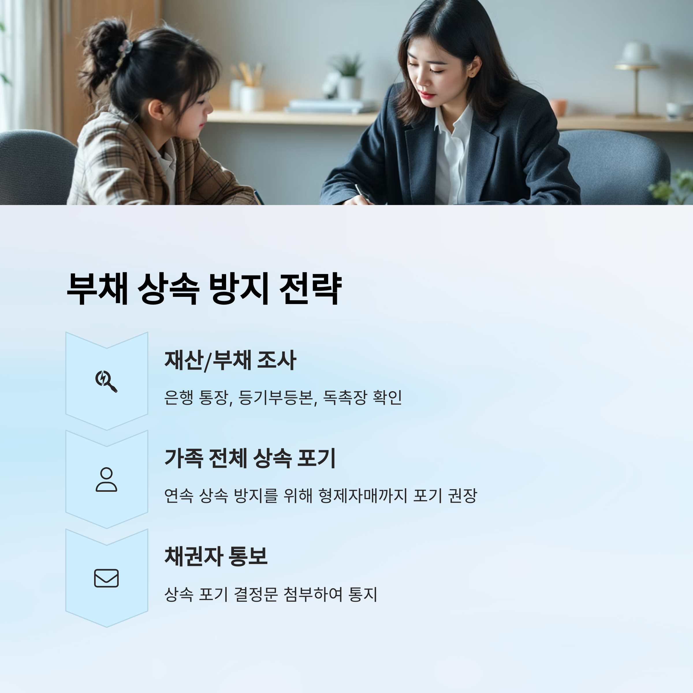 | 가족 전체 상속 포기 | 연속 상속 방지 | 형제자매까지 포기 권장 |