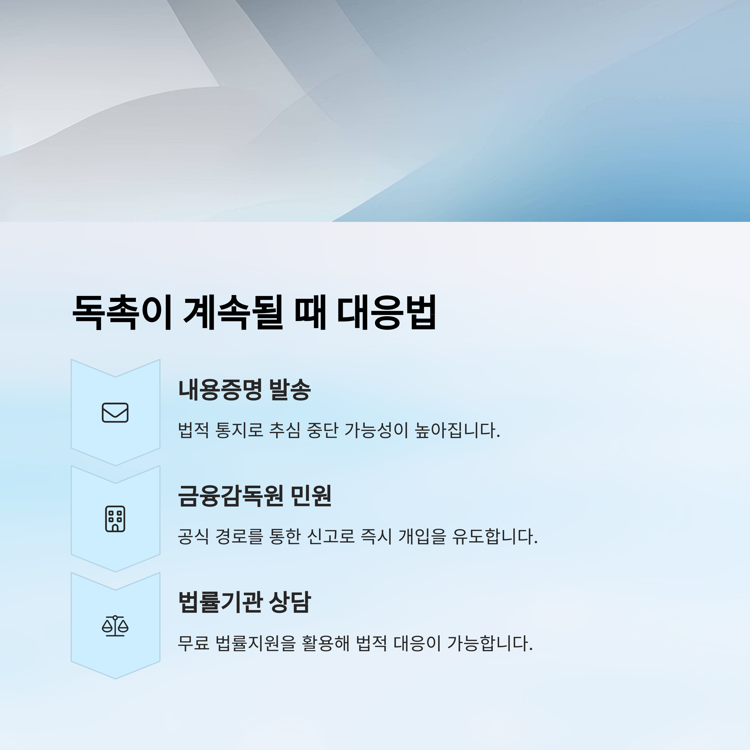 | 내용증명 발송 | 법적 통지 | 추심 중단 가능성 ↑ |