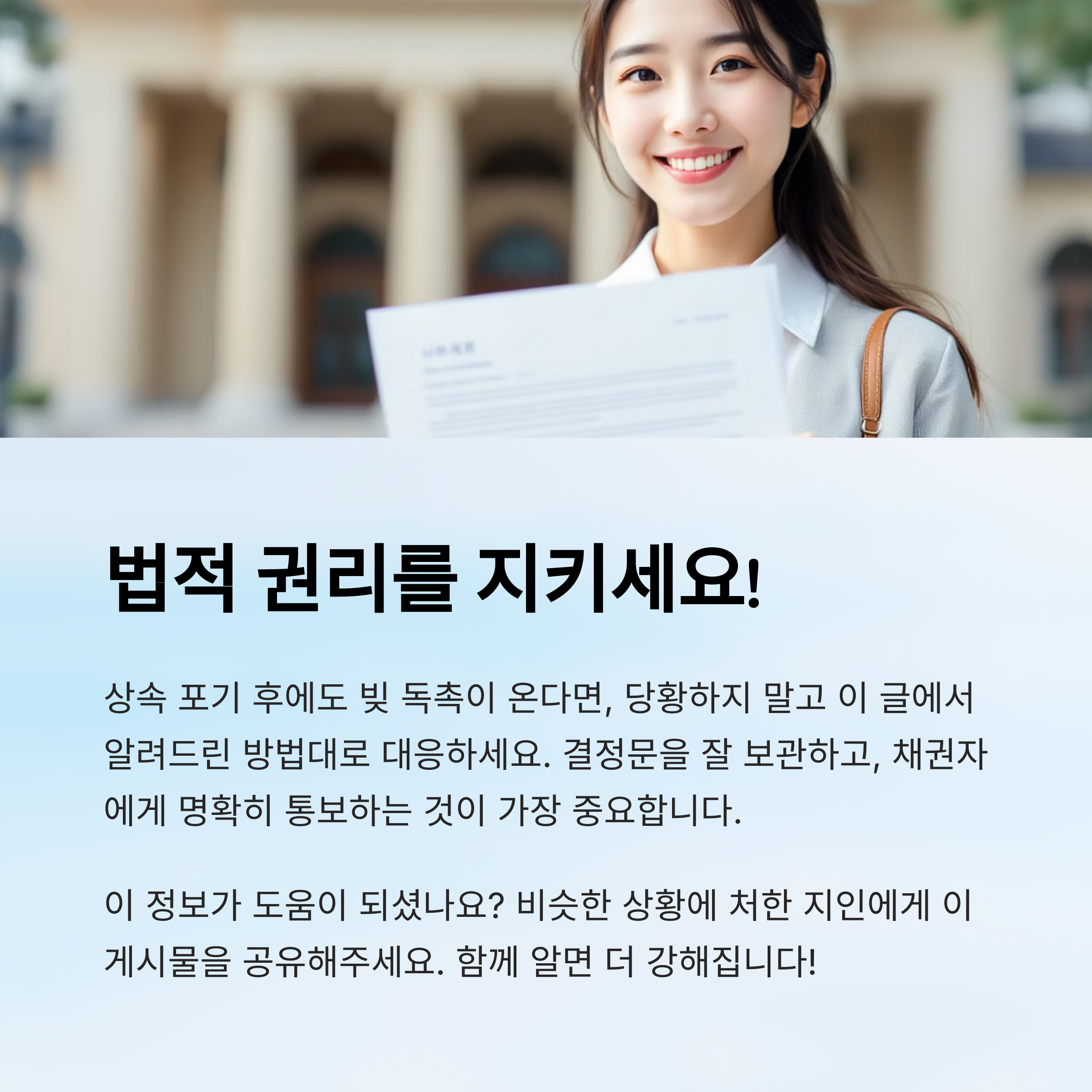 결론은, 상속 포기를 했더라도 ‘내가 스스로 채권자에게 알리지 않으면’ 빚 독촉이 멈추지 않을 수 있다는 거예요. 그래서 통보가 정말 중요하답니다. 📬
