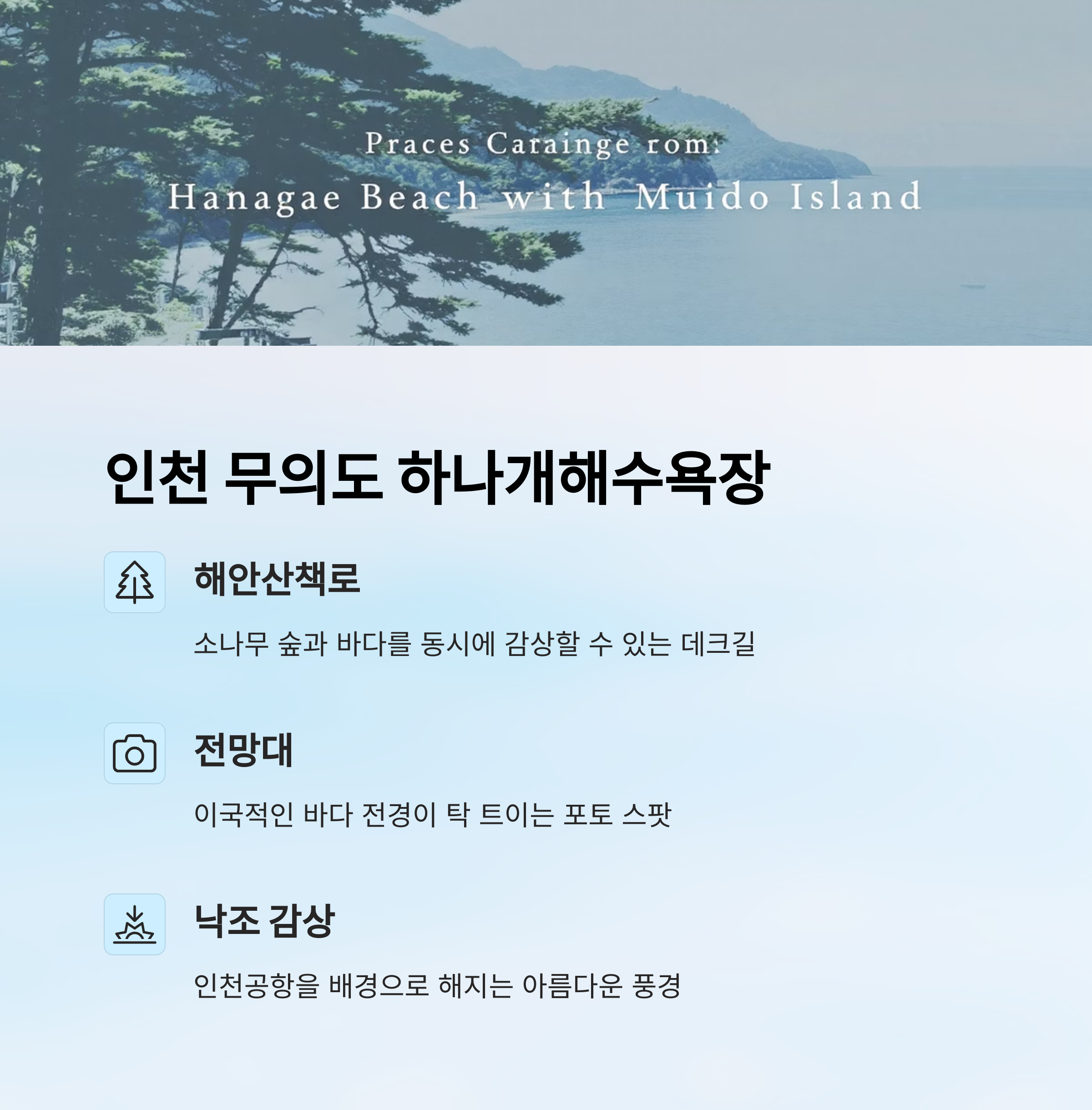 무의도는 서울에서 가장 빠르게 접근할 수 있는 섬 중 하나예요. 특히 하나개해수욕장은 자연과 함께 조용히 걷고 쉬기에 안성맞춤인 장소랍니다. 공항철도와 자가용 모두 쉽게 접근 가능해서 뚜벅이 여행자도 부담 없이 다녀올 수 있어요.