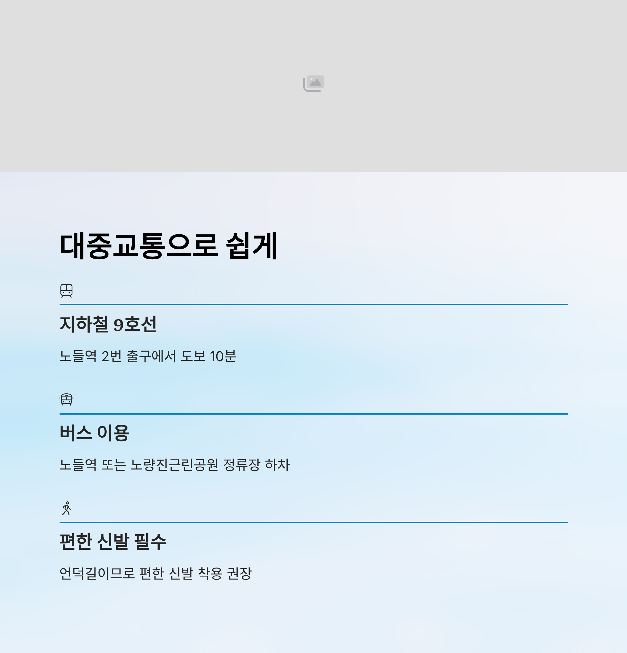 버스를 이용할 경우, ‘노들역’ 또는 ‘노량진근린공원’ 정류장에서 하차하면 편리해요. 마을버스도 간간이 다니기 때문에 노량진역이나 흑석역에서 환승해도 괜찮아요. 특히 주말이나 저녁 시간대에는 지하철 이용을 추천해요. 차량 정체나 주차 문제를 피할 수 있거든요.
