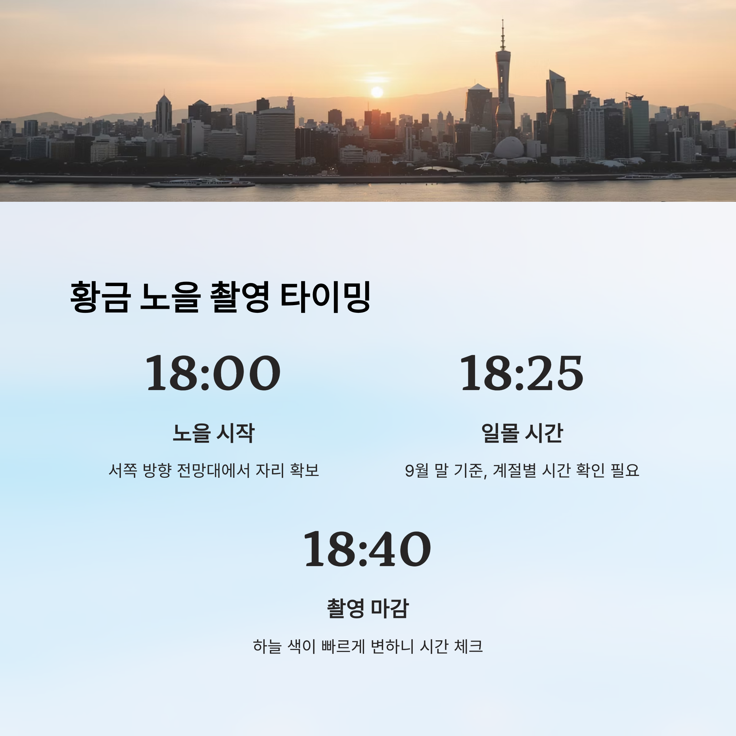 ⏰ 서울 노을 시간대별 촬영 타이밍