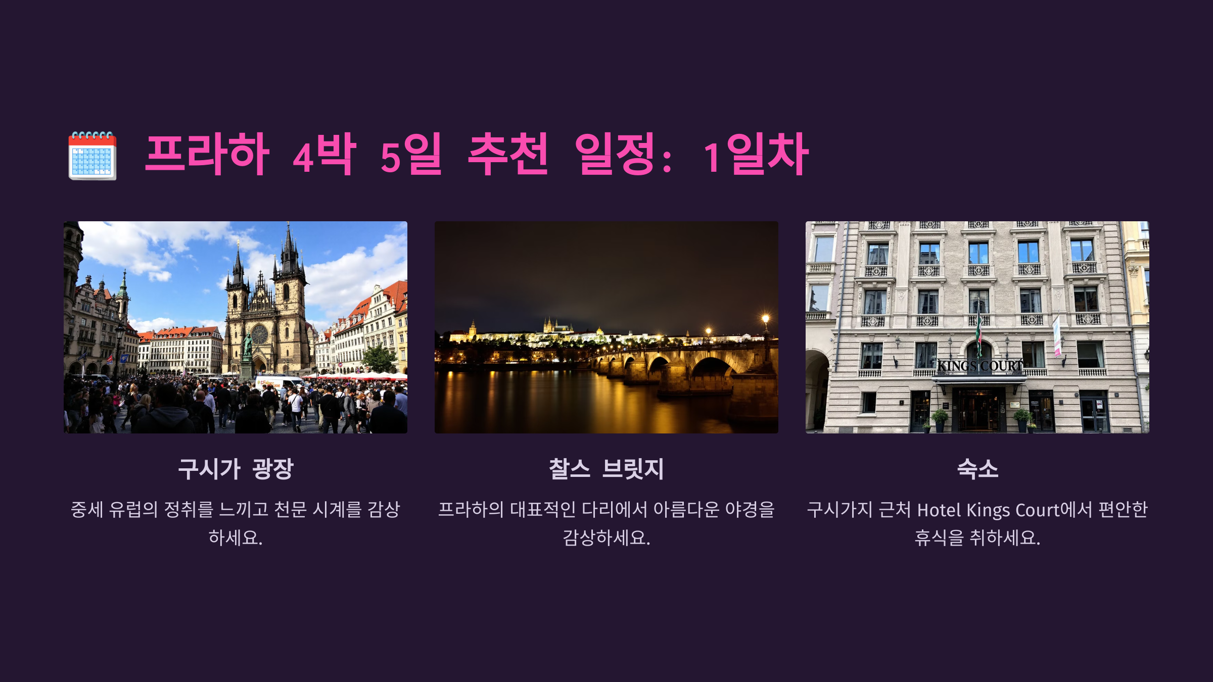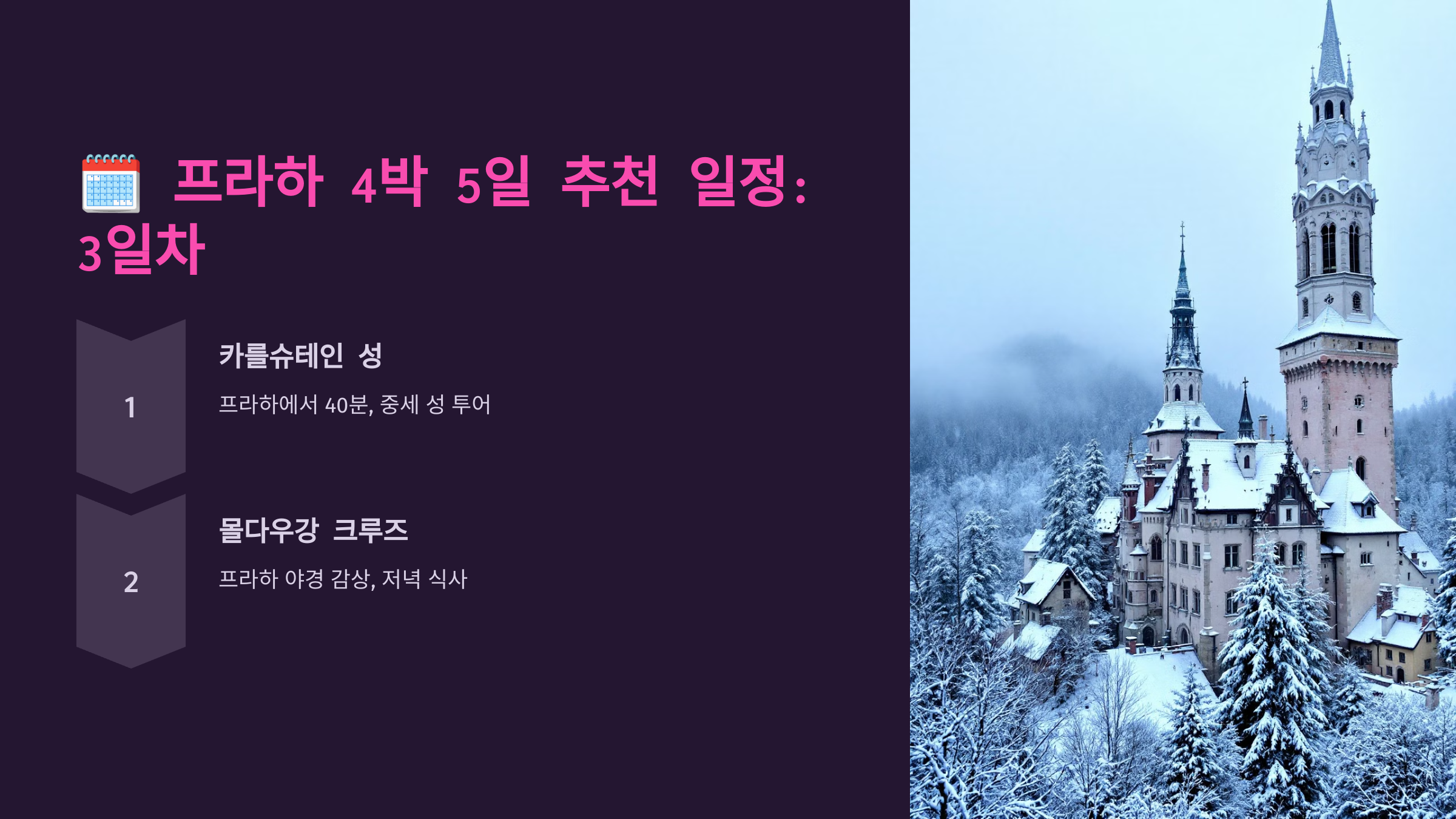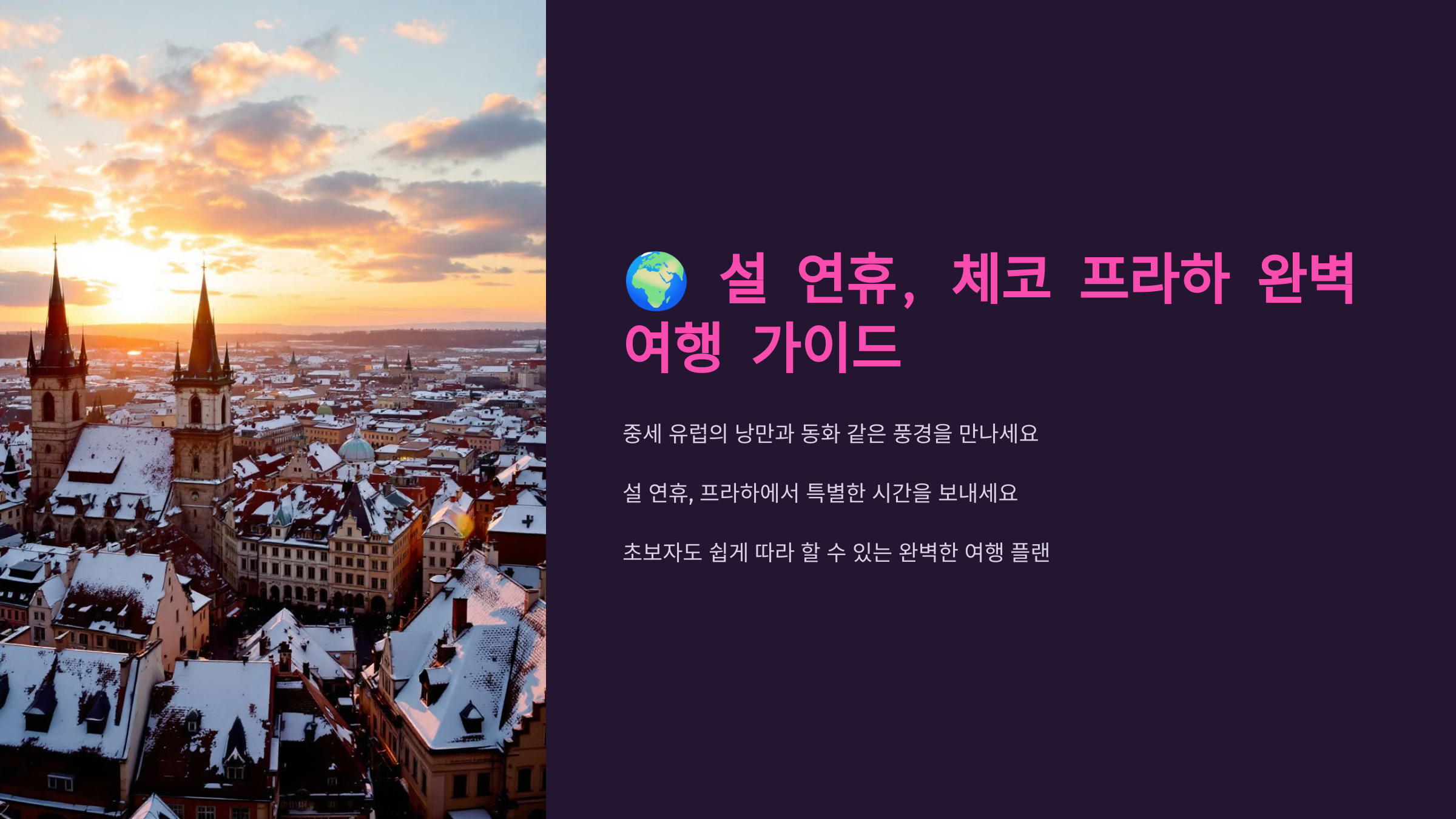 "중세 유럽의 낭만과 동화 같은 풍경을 만나고 싶으신가요? ✨ 이번 설 연휴, 체코 프라하에서 특별한 시간을 보내세요. 초보자도 쉽게 따라 할 수 있는 완벽한 여행 플랜으로 유럽의 중심에서 잊지 못할 추억을 만들어 보세요!"
