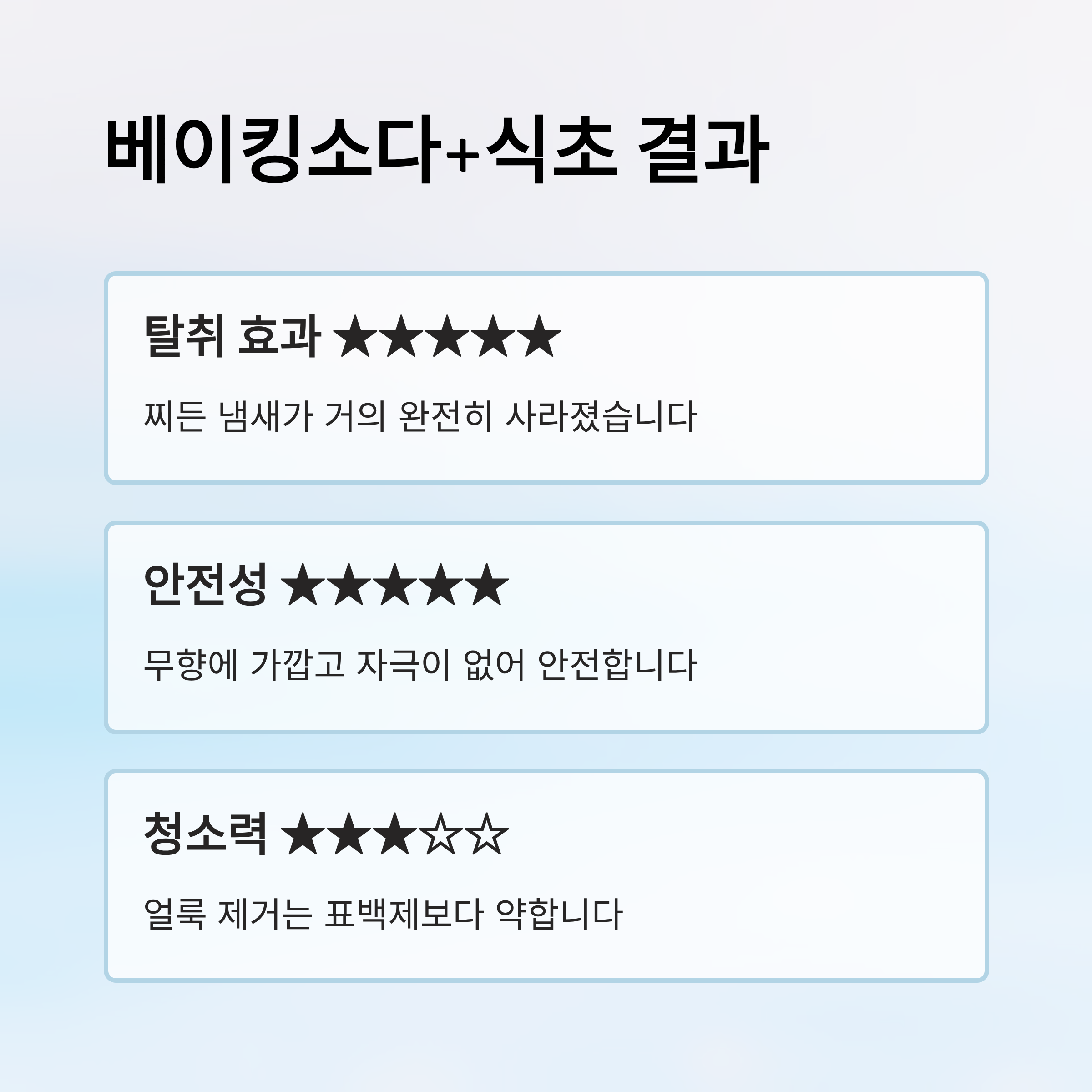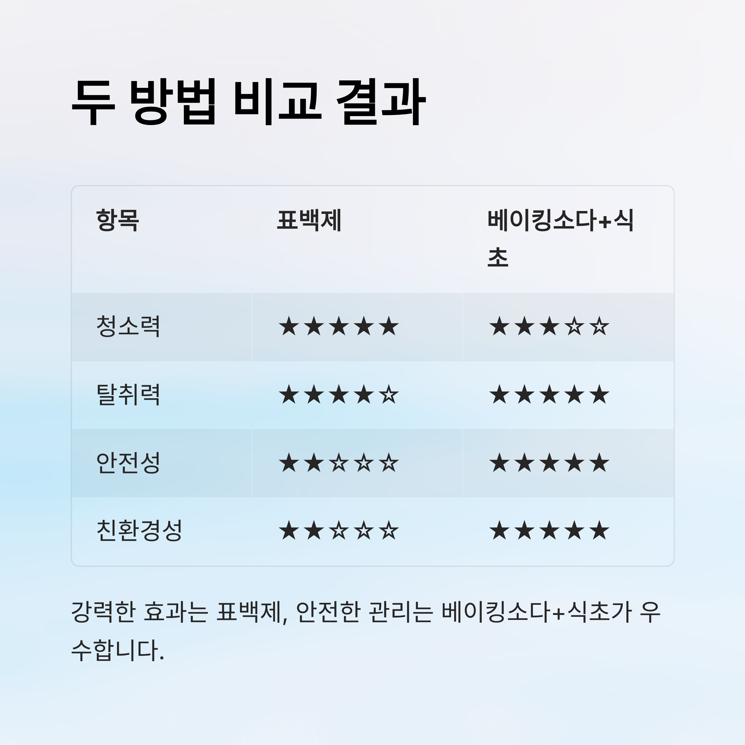 | 항목 | 표백제 | 베이킹소다+식초 |