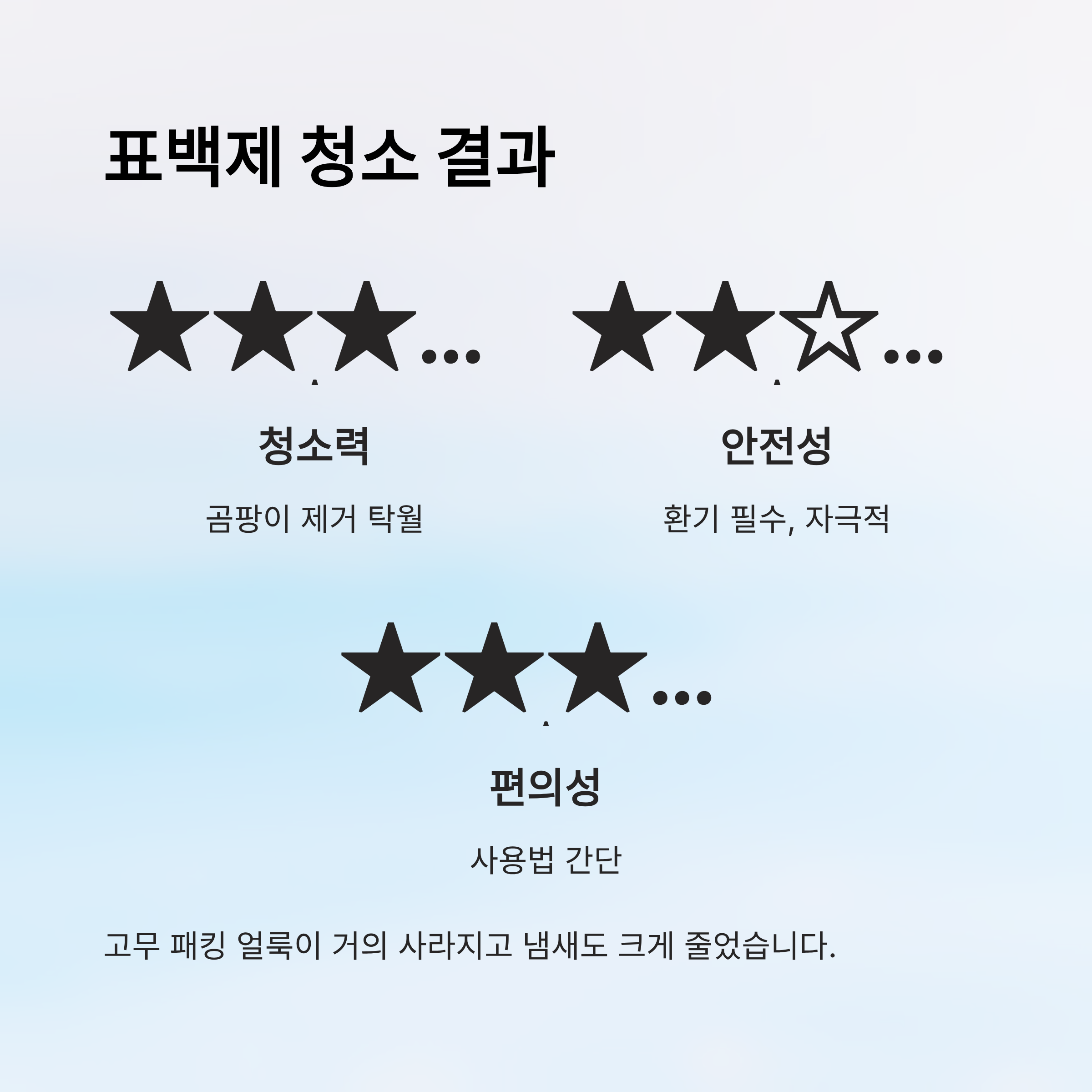 | 청소력 | ★★★★☆ (곰팡이 제거 탁월) |