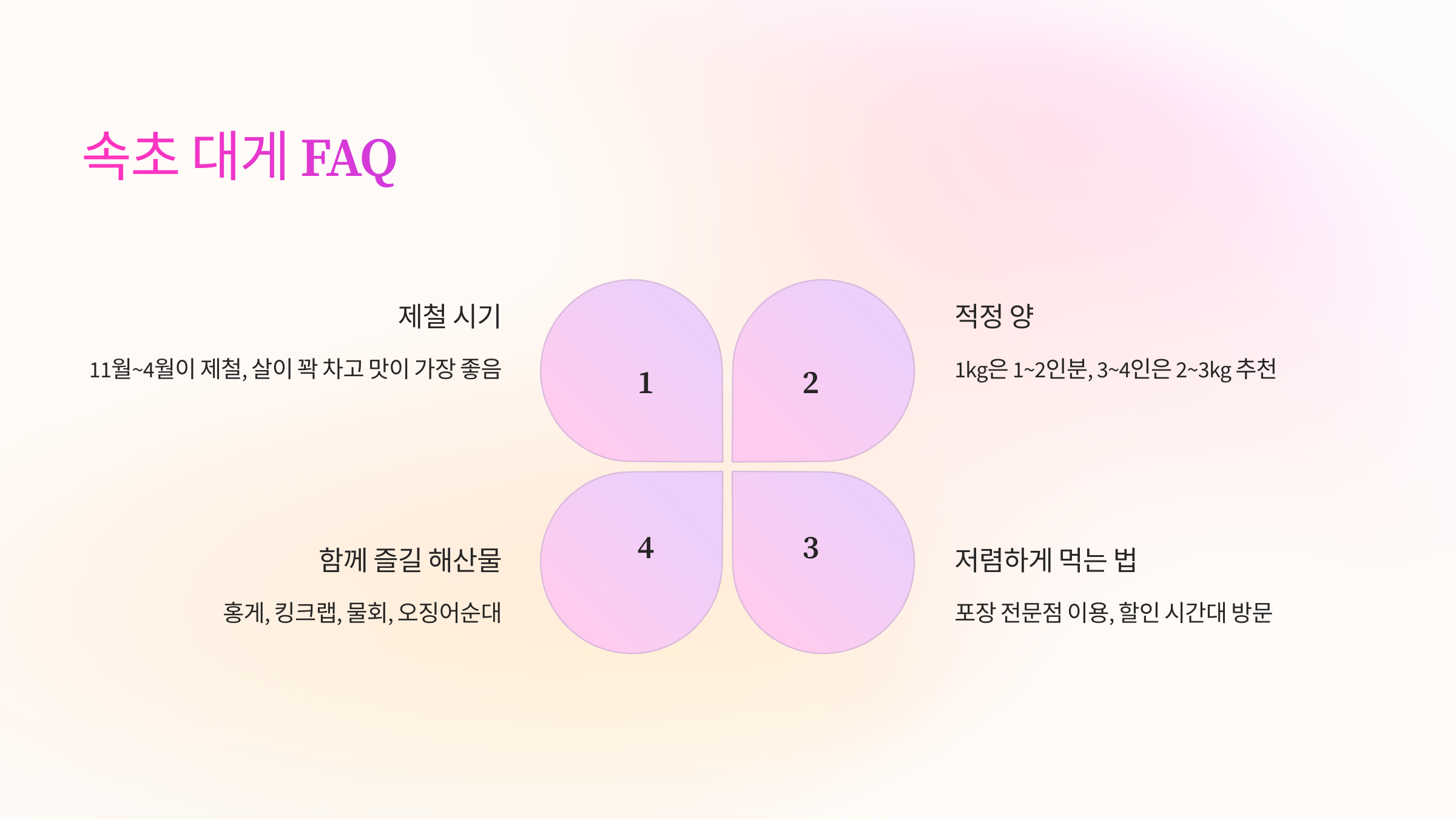 - 숙회 서비스 확인 - 일부 대게 맛집에서는 **전복, 멍게 숙회가 서비스**로 제공되기도 해요.