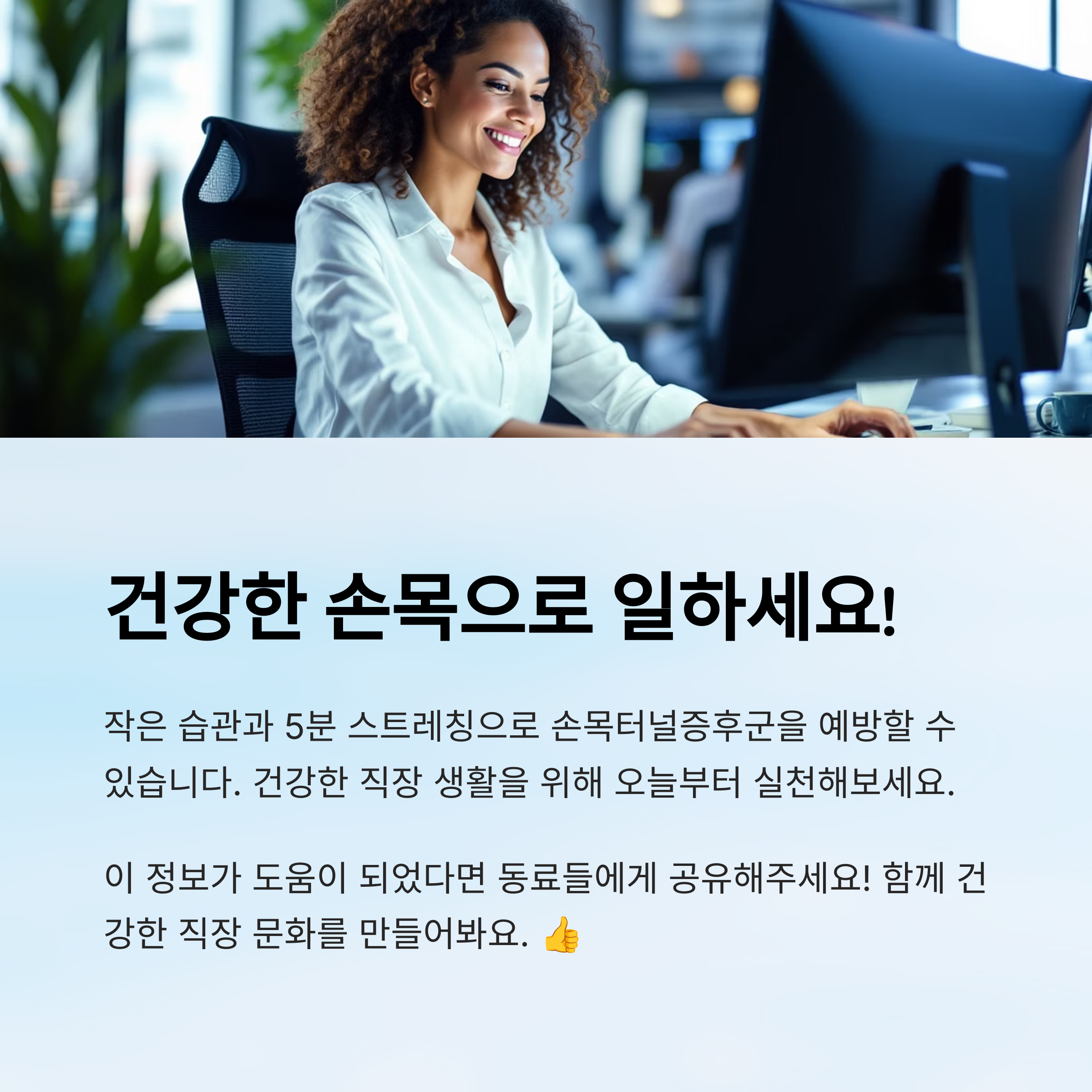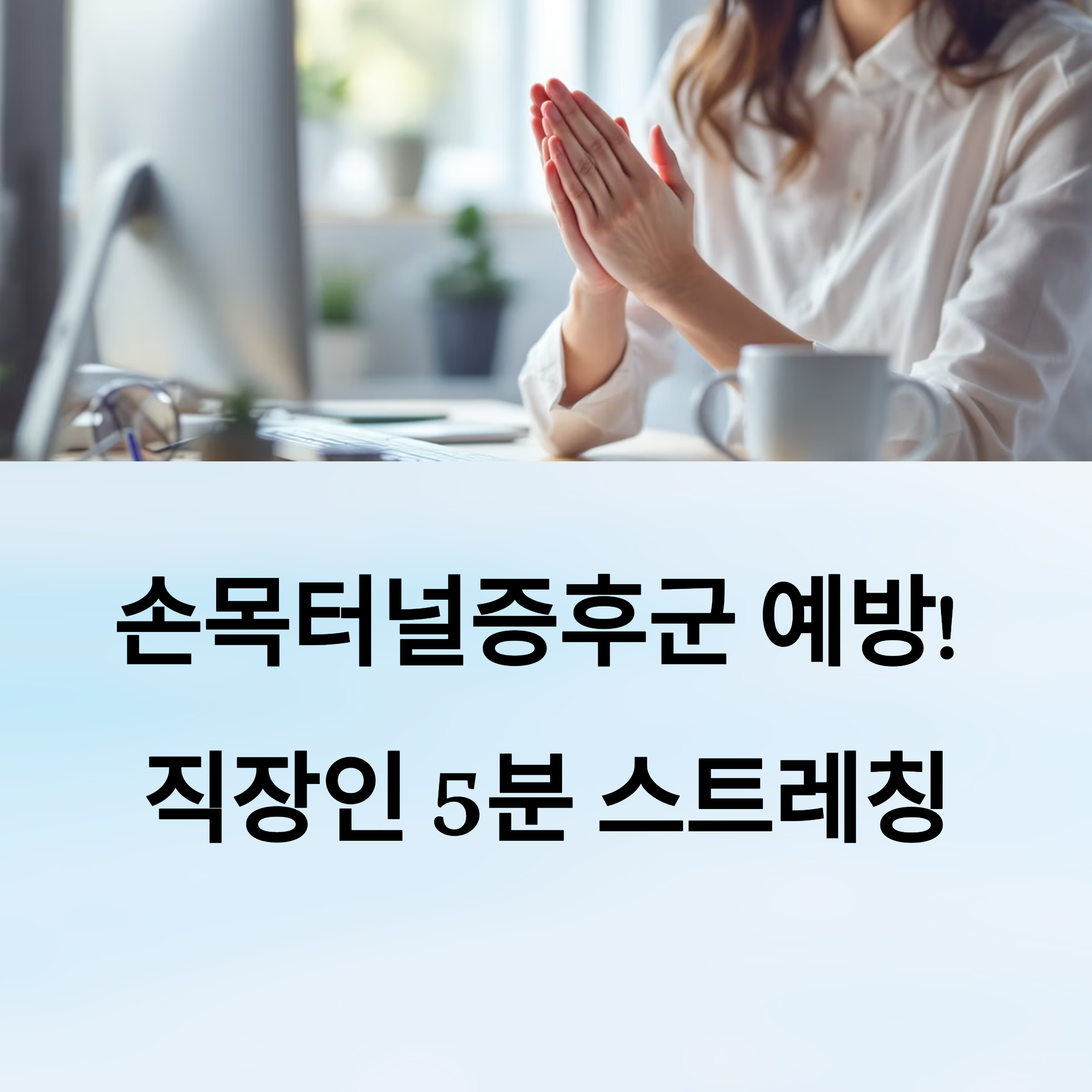 요즘은 업무의 효율만큼 건강한 습관도 중요시되고 있어요. 그래서 오늘은 책상 앞에서 5분이면 끝낼 수 있는 손목 스트레칭을 소개할게요. 따로 시간 내지 않아도 일하는 중간중간 간단히 할 수 있어요 🙌