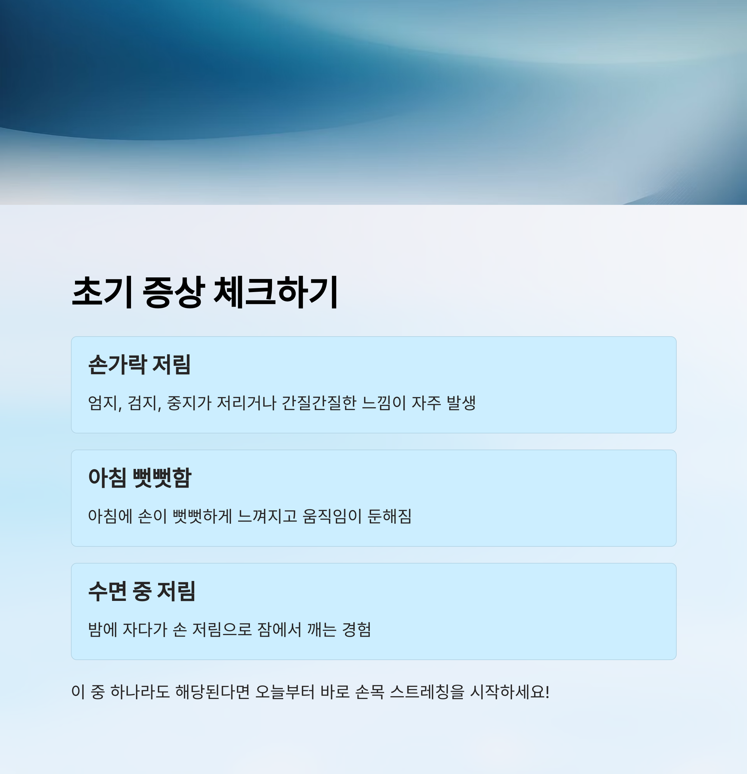 작은 습관이지만 손목을 지키는 가장 강력한 무기예요! 스트레칭과 함께 생활습관까지 챙긴다면 손목터널증후군은 멀어질 수 있어요 🙏