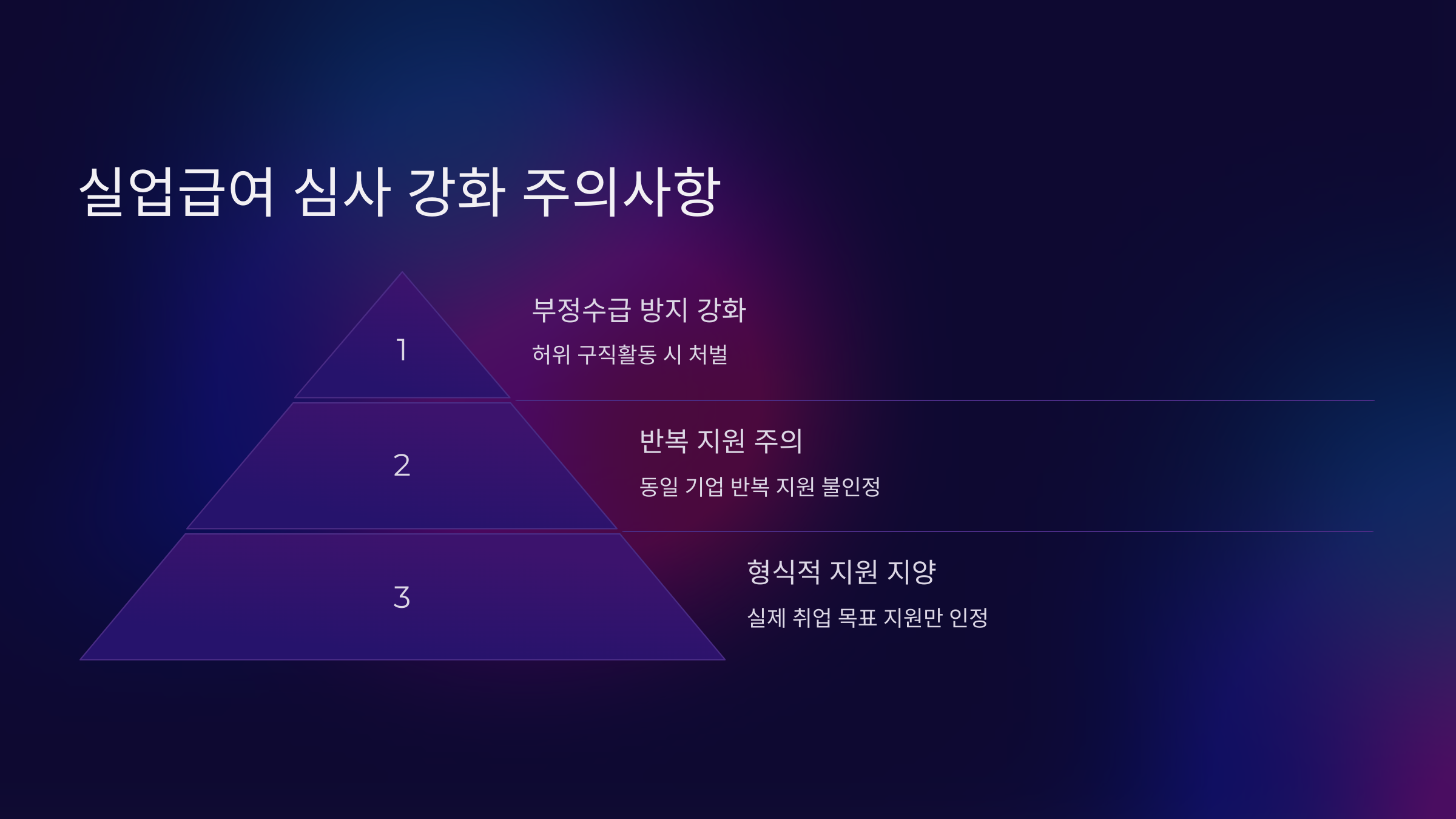 | 부정 수급 적발 | 허위 구직활동 시 수급 중단 |