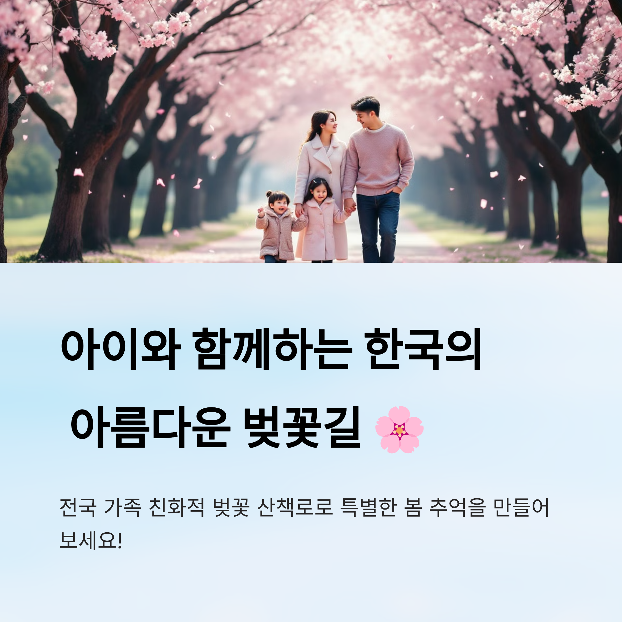 봄바람이 살랑거리는 이 계절, 아이들과 함께 벚꽃길을 걸으며 꽃놀이 하는 시간은 특별한 추억이 되죠. 하지만 어린 아이들과 함께라면 안전한 길과 편의시설이 잘 갖춰진 곳을 선택하는 게 정말 중요해요👣