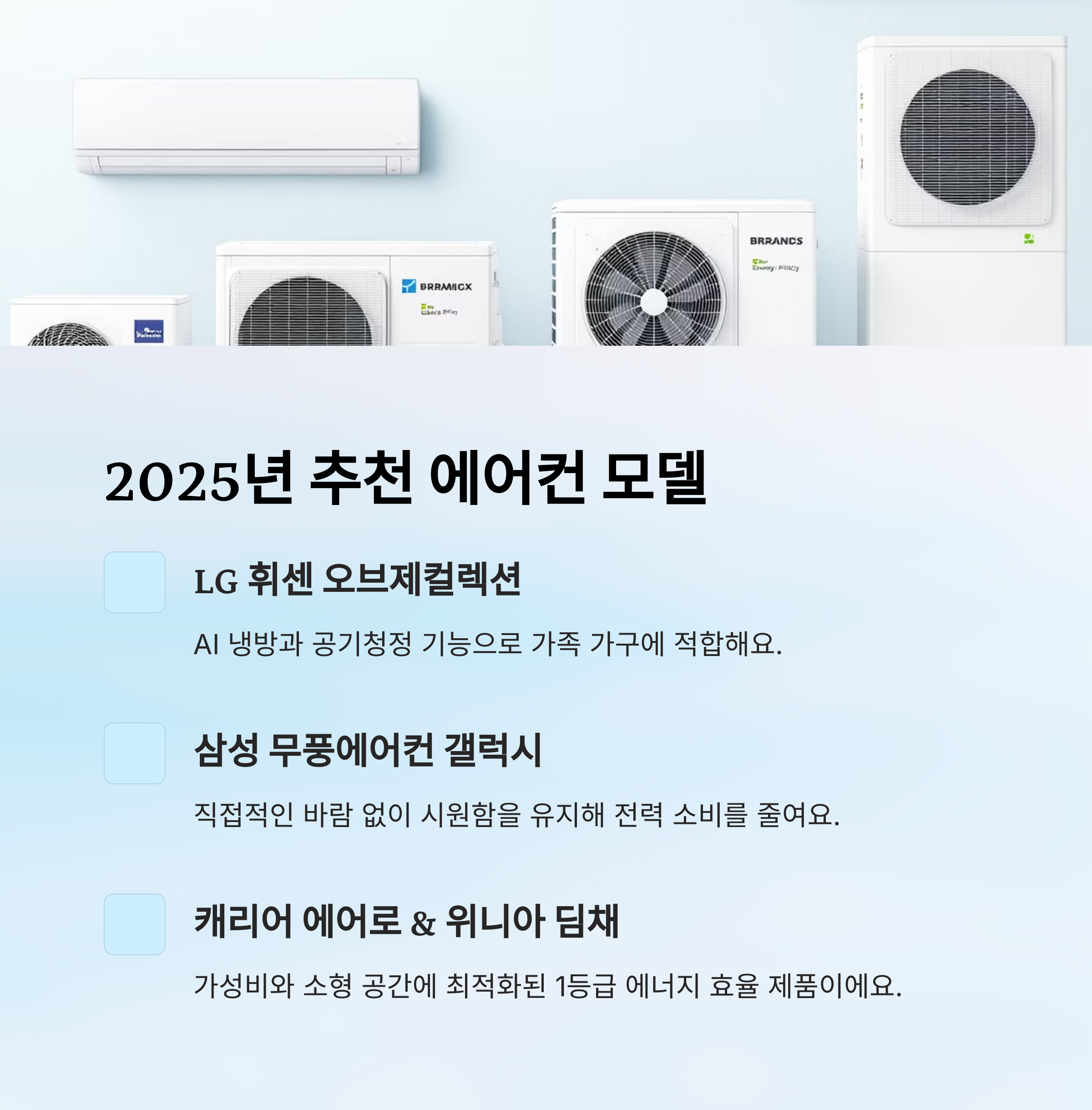2025년 여름을 맞아 전기세 아끼면서도 강력한 냉방 성능을 자랑하는 에어컨 모델들이 대거 출시됐어요. 이번 섹션에서는 성능, 에너지 효율, 기능, 사용자 평 등을 기준으로 꼭 주목할 만한 모델을 소개할게요. 가격대는 다르지만 절전 측면에서는 모두 합격이에요.