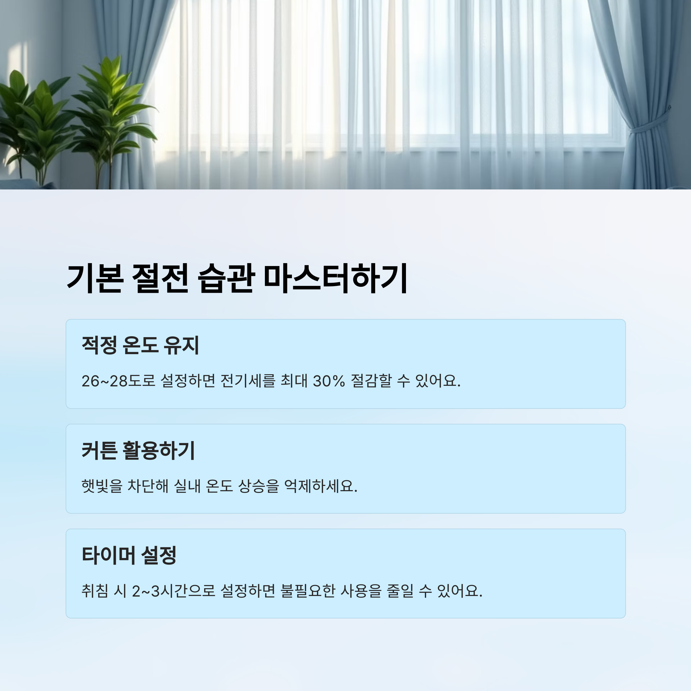 이제 에어컨이 어떻게 작동하는지 이해했으니, 그에 맞는 절약 습관을 익히면 더 효율적인 여름을 보낼 수 있어요. 다음 섹션에서는 기본적으로 할 수 있는 절전 습관들을 알아볼게요! 🛠️