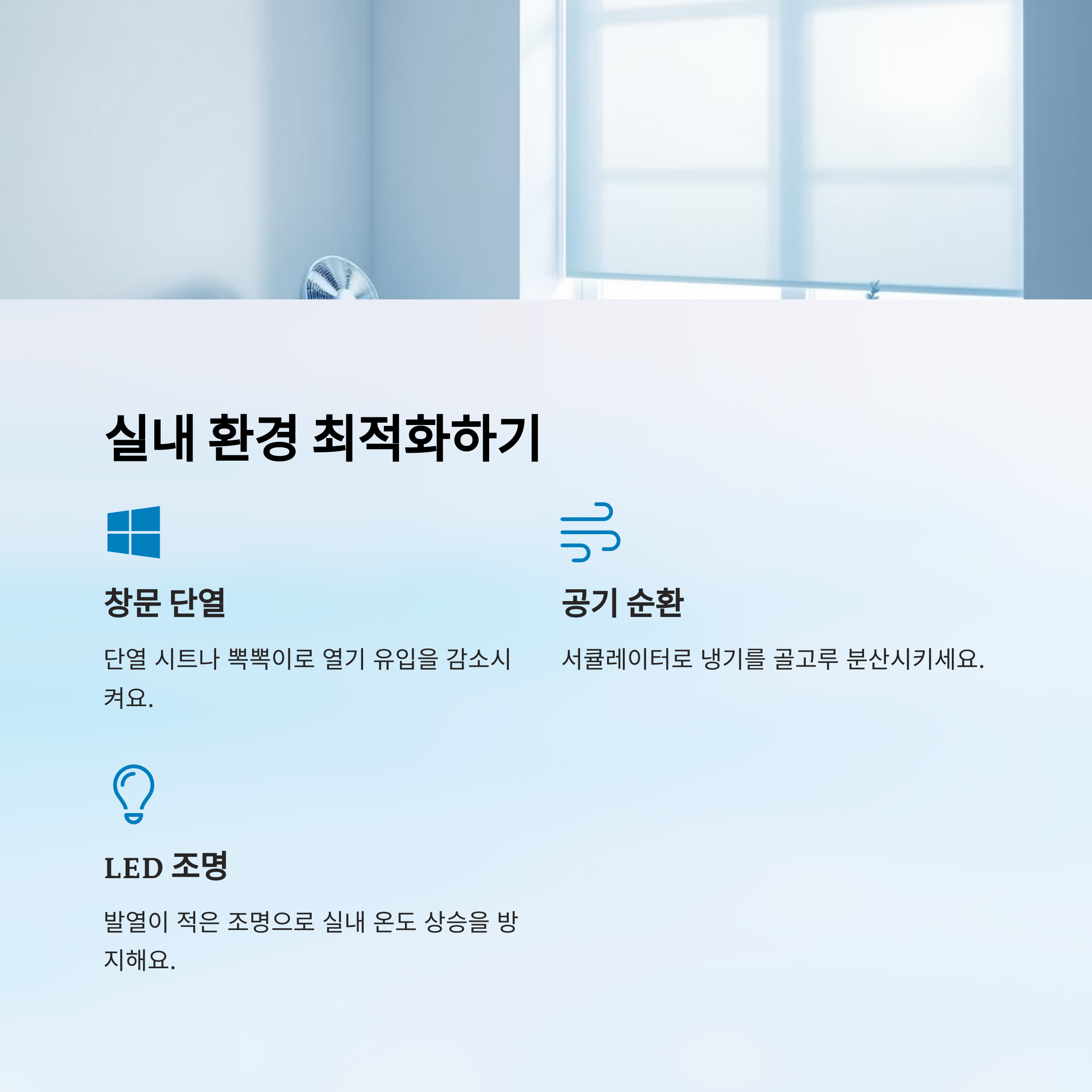 이제 에어컨과 친해지는 기본기를 알았으니, 다음은 실내 환경을 어떻게 조절하면 더 효과적으로 냉방할 수 있는지 알아볼 차례예요. 🏠