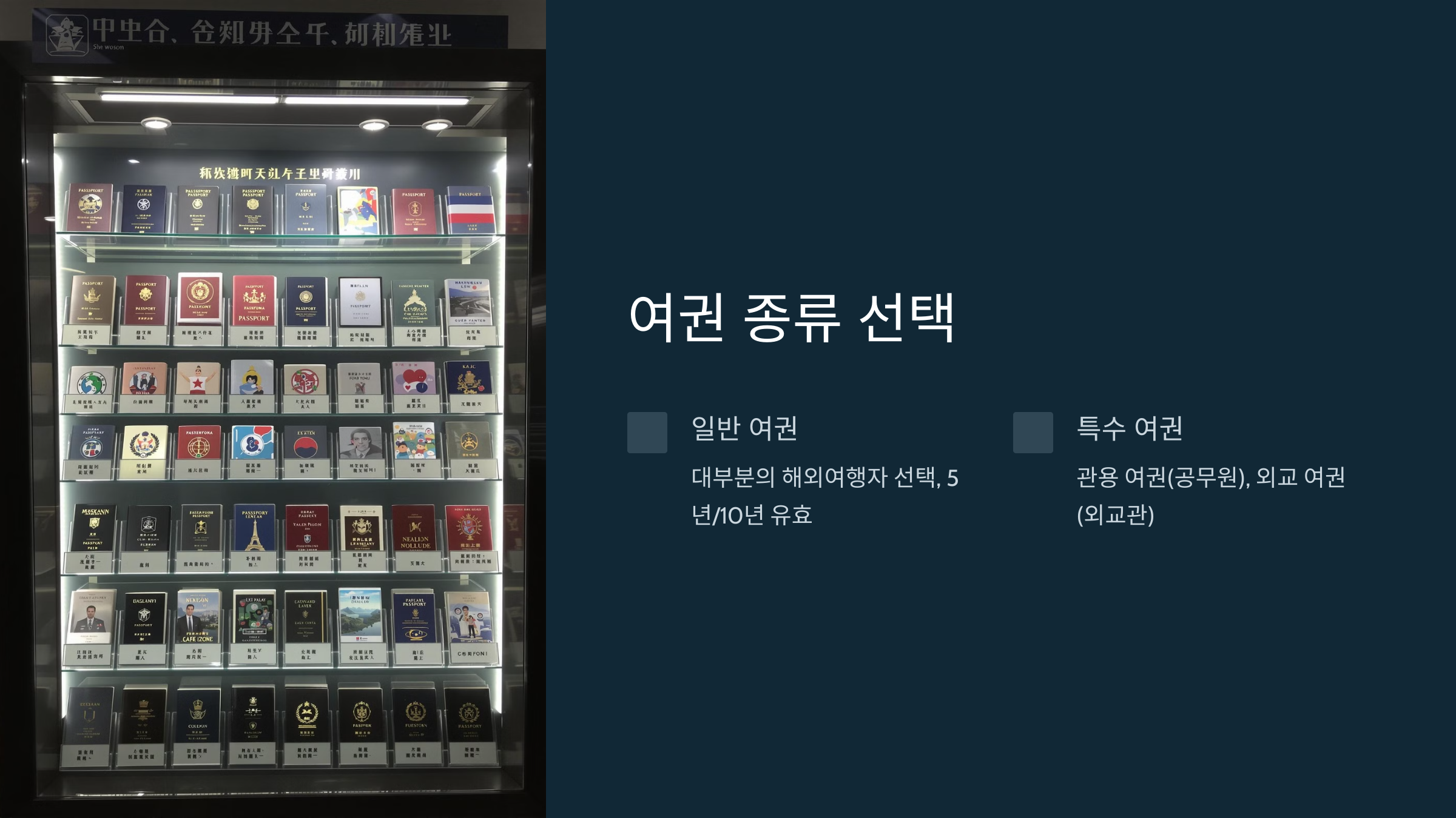 먼저 본인의 여행 목적에 맞는 여권 종류를 선택해야 합니다.