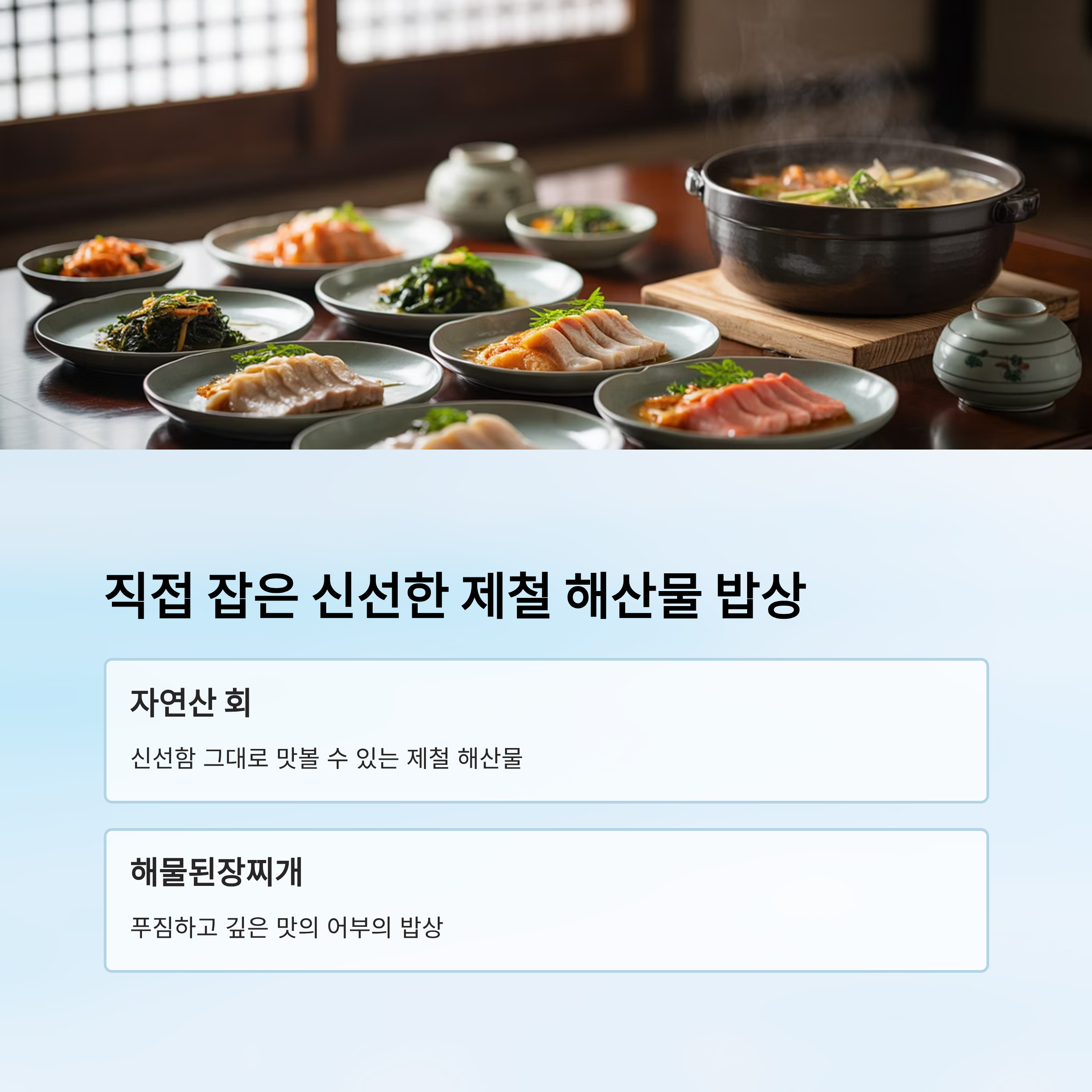 어부들이 직접 잡은 제철 해산물로 만든