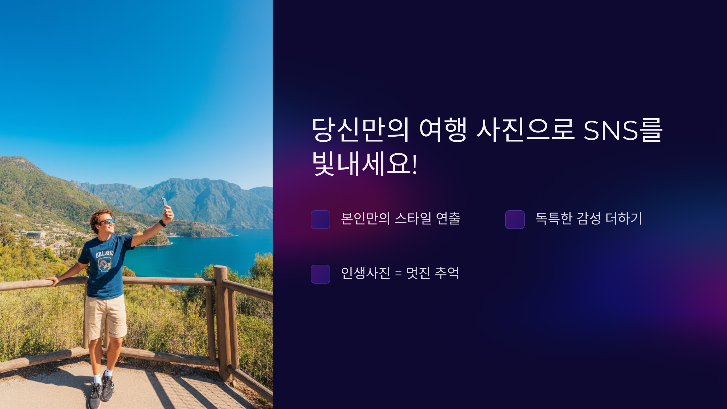 당신만의 여행 사진으로 SNS를 빛내세요! ✨