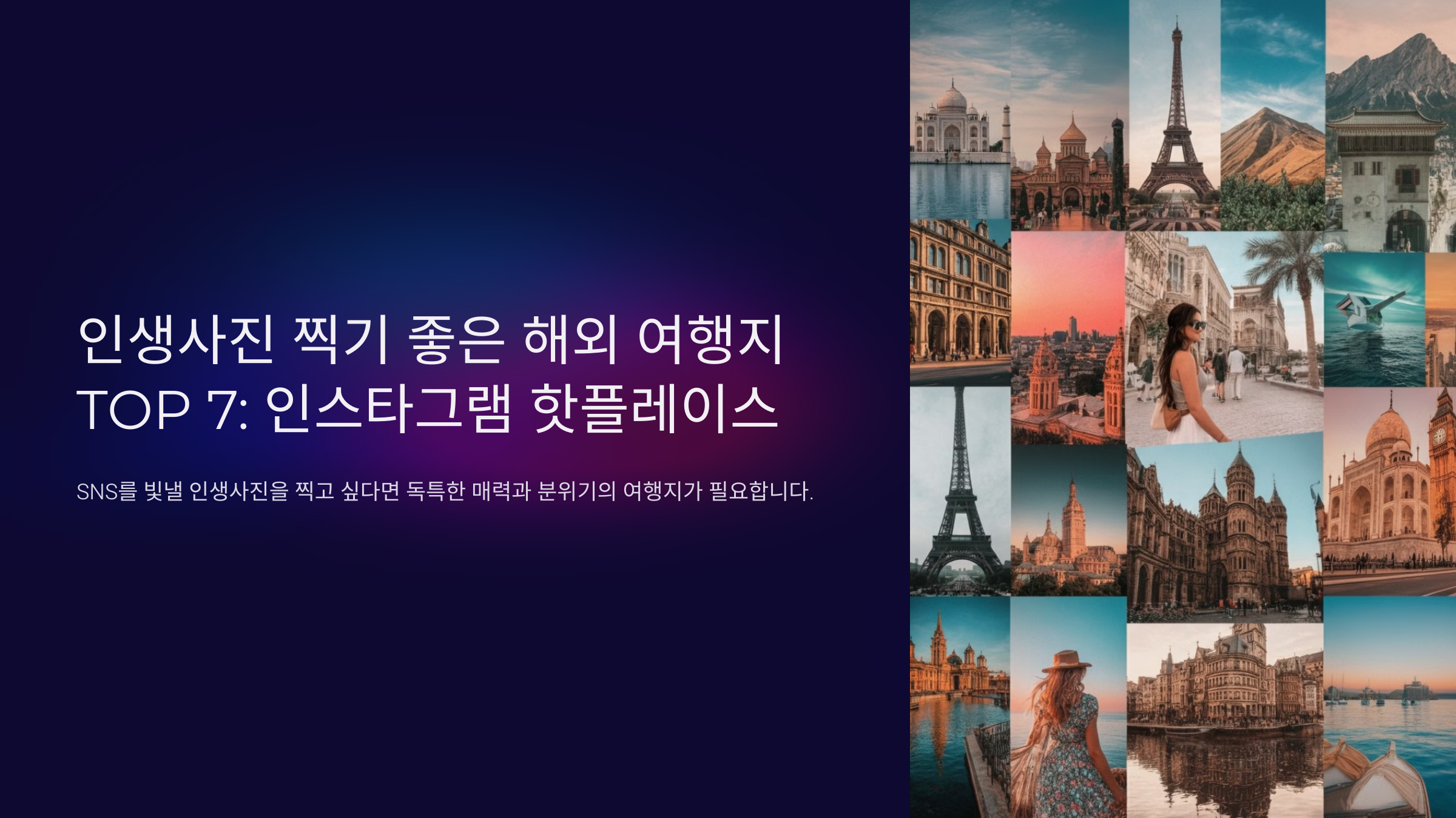 여행을 떠날 때, "여기서 사진 찍으면 완전 핫하겠다!"라고 느껴본 적 있으신가요? SNS를 빛낼 인생사진을 찍고 싶다면, 단순히 예쁜 풍경이 아니라 독특한 매력과 분위기를 자랑하는 여행지가 필요합니다. 오늘은 인스타그램에서 핫한 해외 여행지 TOP 7을 소개해 드릴게요. 이곳에서 사진 한 장이면 좋아요 수가 폭발할 거예요! 😊