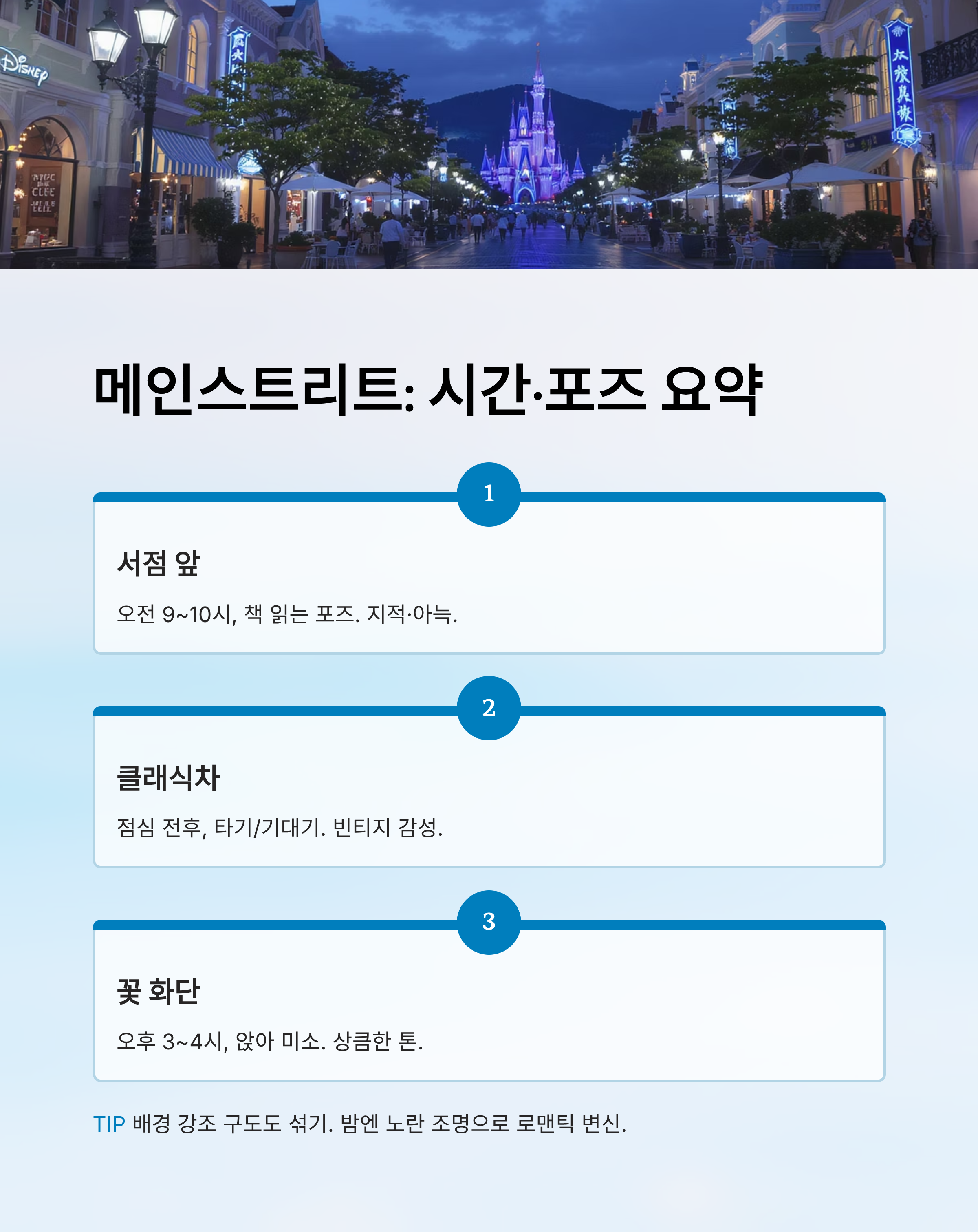 📸 메인스트리트 촬영 포인트 요약