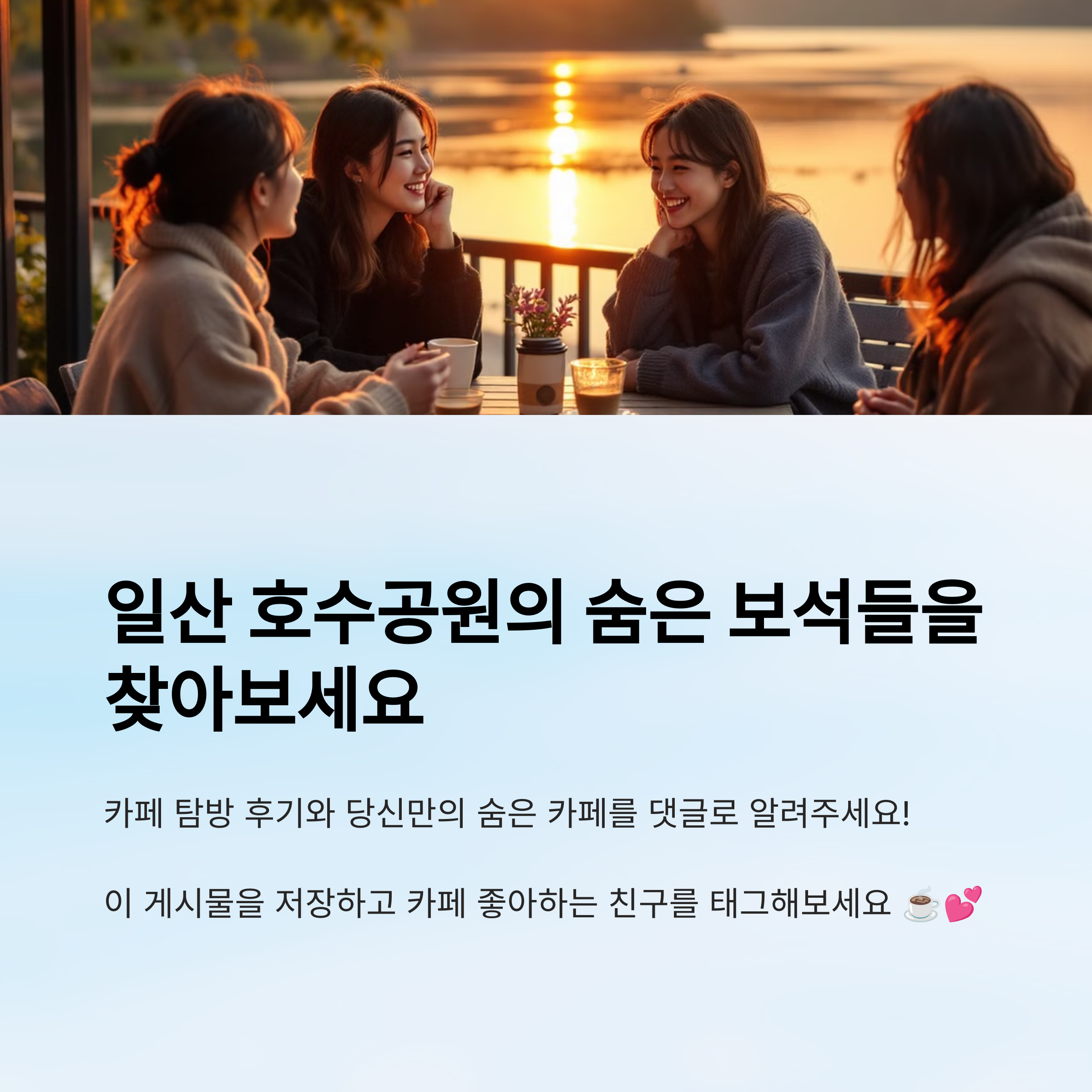 그래서 오늘은 일산 호수공원 근처에서 분위기 좋고, 음료도 맛있고, 사진 찍기 좋은 감성 카페 5곳을 소개할게요! 실제로 다녀온 후기와 입소문 난 핫플 위주로 골랐어요✨