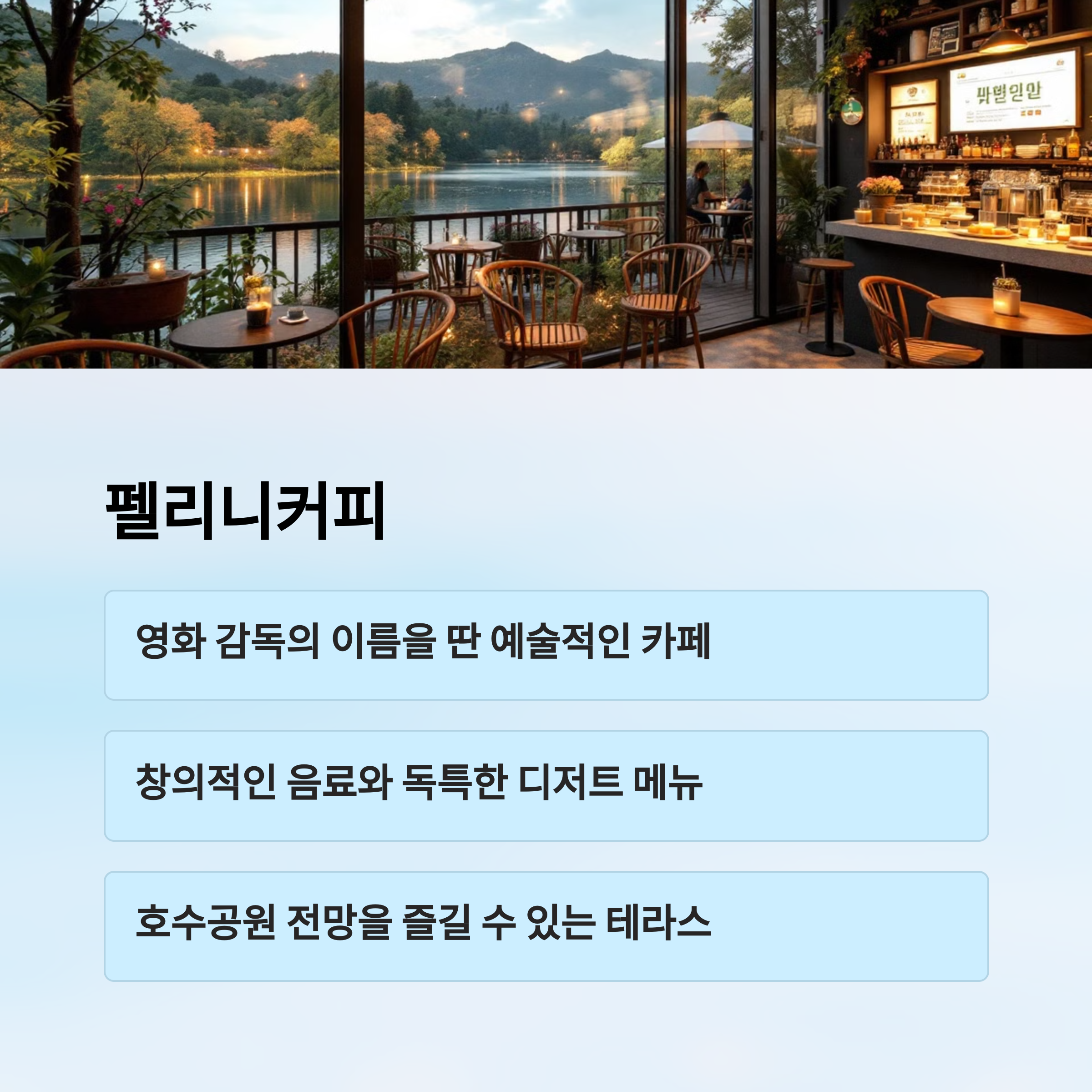 제가 생각했을 때 산책 후 커피 한 잔은 하루를 완성시키는 마무리 같아요. 여유를 즐길 수 있는 카페, 지금부터 하나씩 살펴볼게요☕