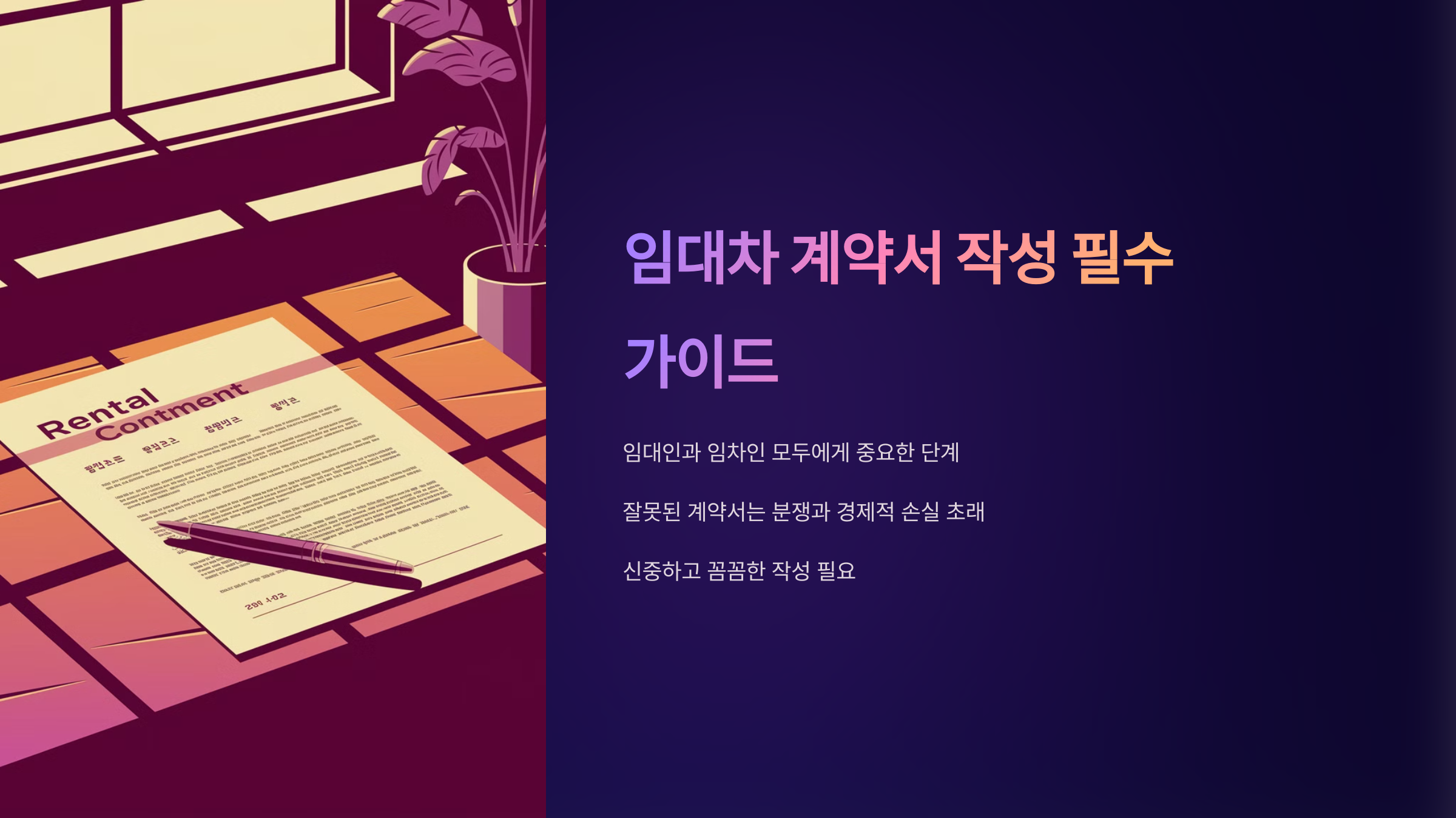 결론적으로, 임대차 계약서는 단순한 문서가 아니라 양측 간의 신뢰와 권리를 보장하는 안전장치라는 점을 꼭 기억하세요.
