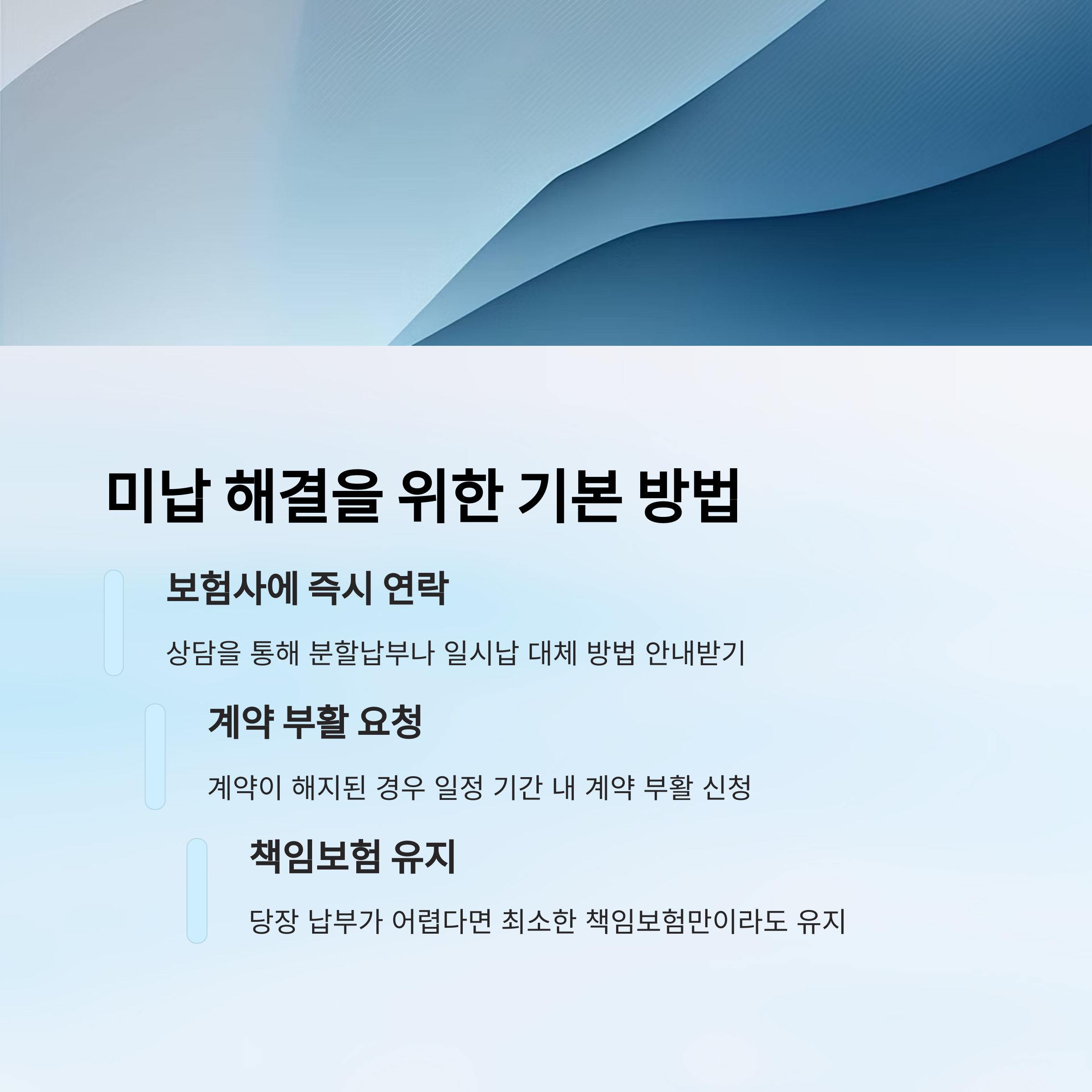 먼저 해야 할 일은 ‘보험사에 즉시 연락하는 것’이에요. 많은 사람들이 이 단계를 망설이지만, 보험사도 납부를 독촉하기보다 해결책을 제시하려는 쪽에 더 가까워요. 상담을 통해 분할납부나 일시납 대체 방법 등을 안내받을 수 있어요.