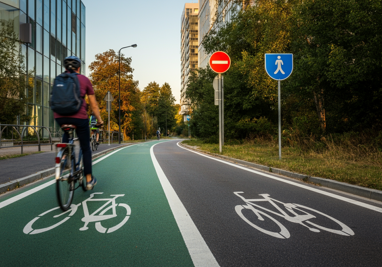 차량이 많은 도로에서는 자전거 전용 도로를 이용하세요.