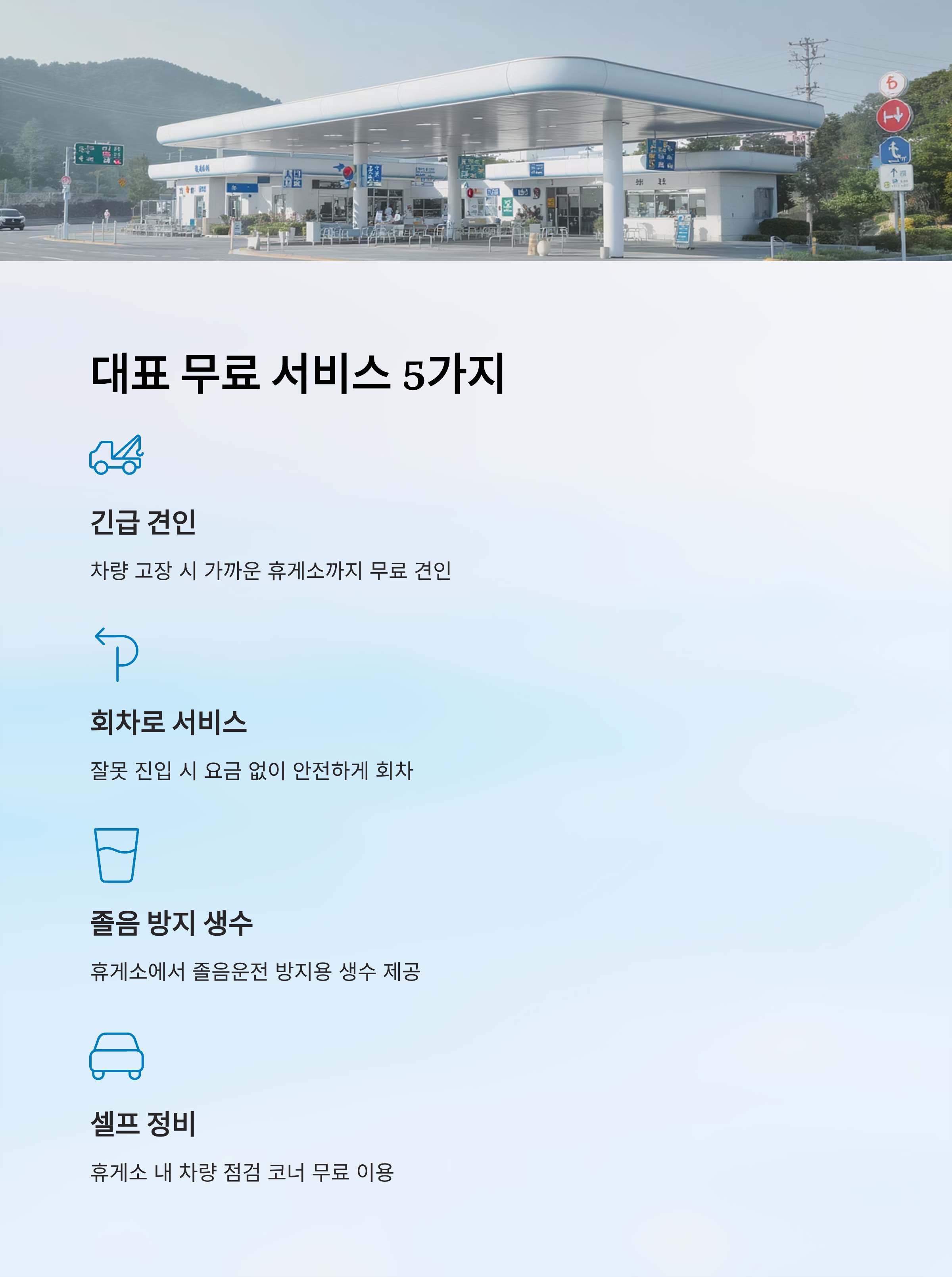 많은 운전자들이 잘 모르고 지나치지만, 실제로 고속도로에서 활용할 수 있는 무료 서비스는 다양해요. 대표적으로 무료 긴급 견인, 잘못 진입 시 회차, 졸음 방지 생수 제공, 셀프 정비 코너, 비상 대피 안내 서비스까지 총 다섯 가지가 있어요.
