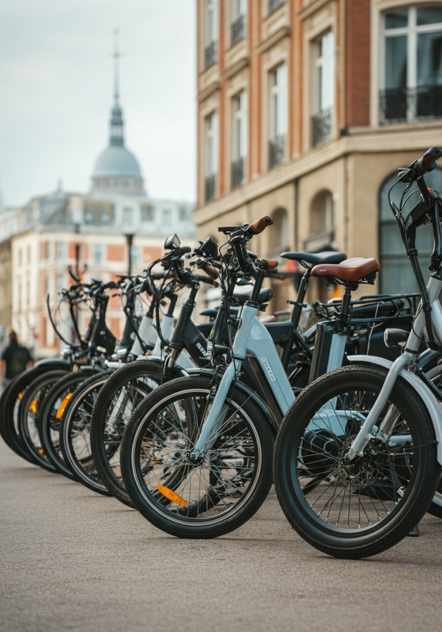 도시 통근용 자전거는 보통 폴딩 기능과 충전 편의성이 특징입니다.