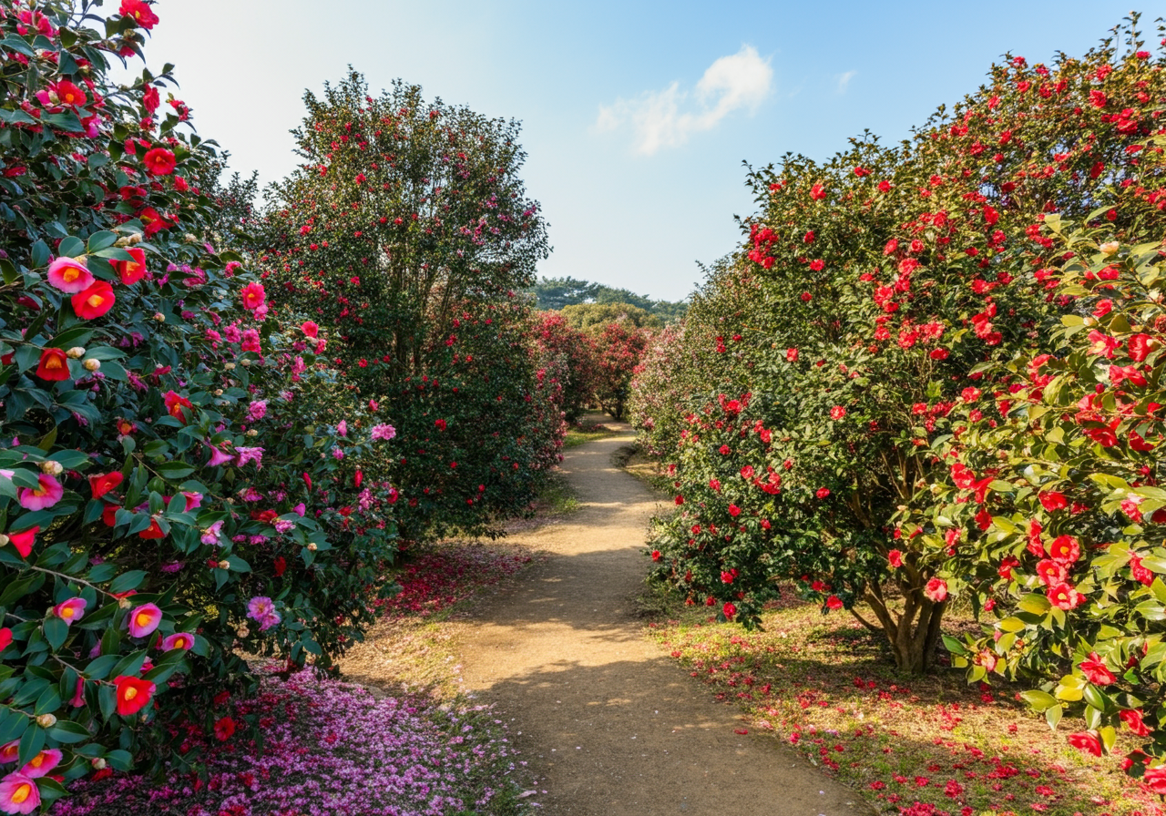 카멜리아힐: 동백꽃과 다양한 식물들을 감상할 수 있는 인기 명소입니다.