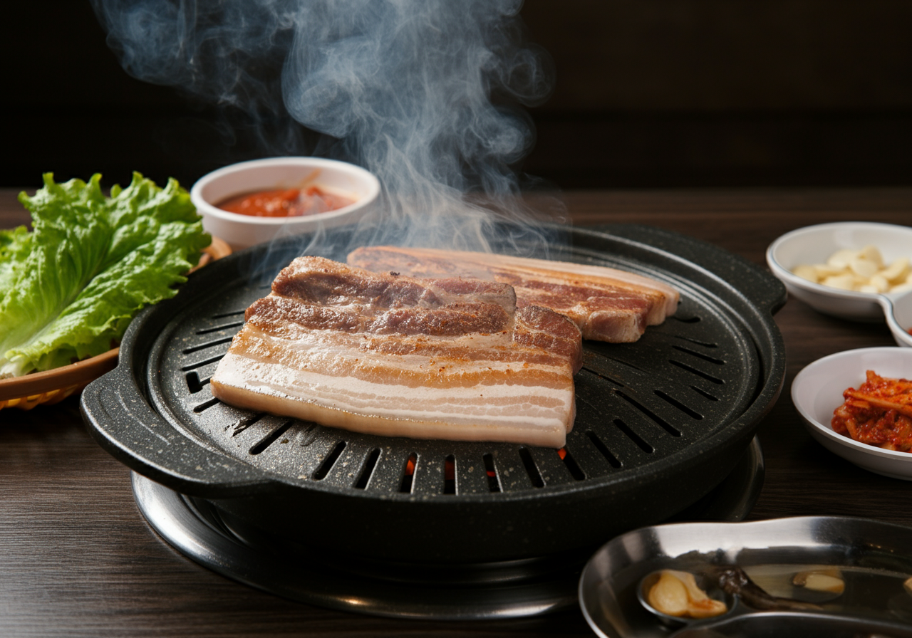 협재해변 근처: 흑돼지 바비큐가 인기 있는 ‘돈사돈’.