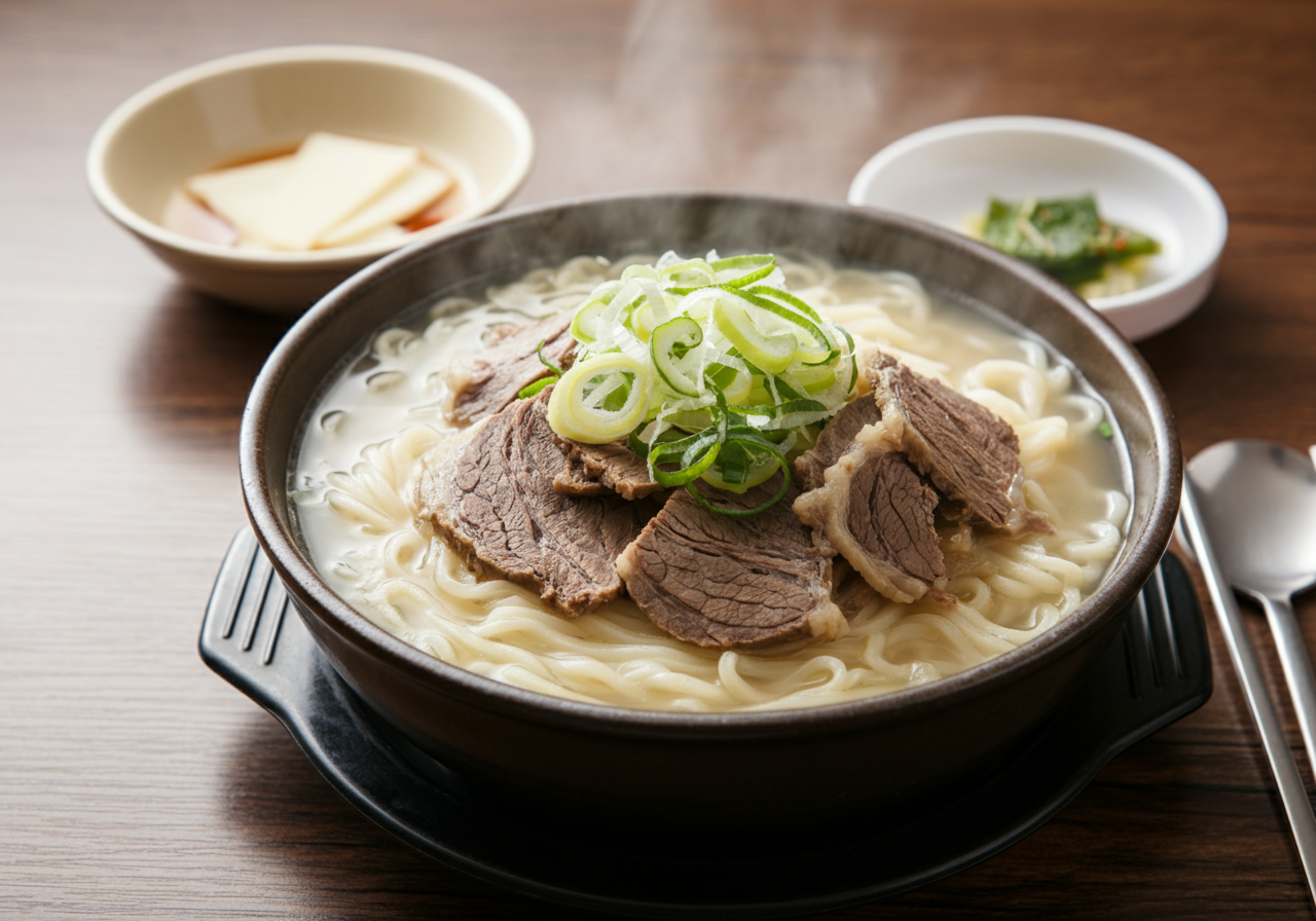 제주시: 고기국수로 유명한 ‘올래국수’.