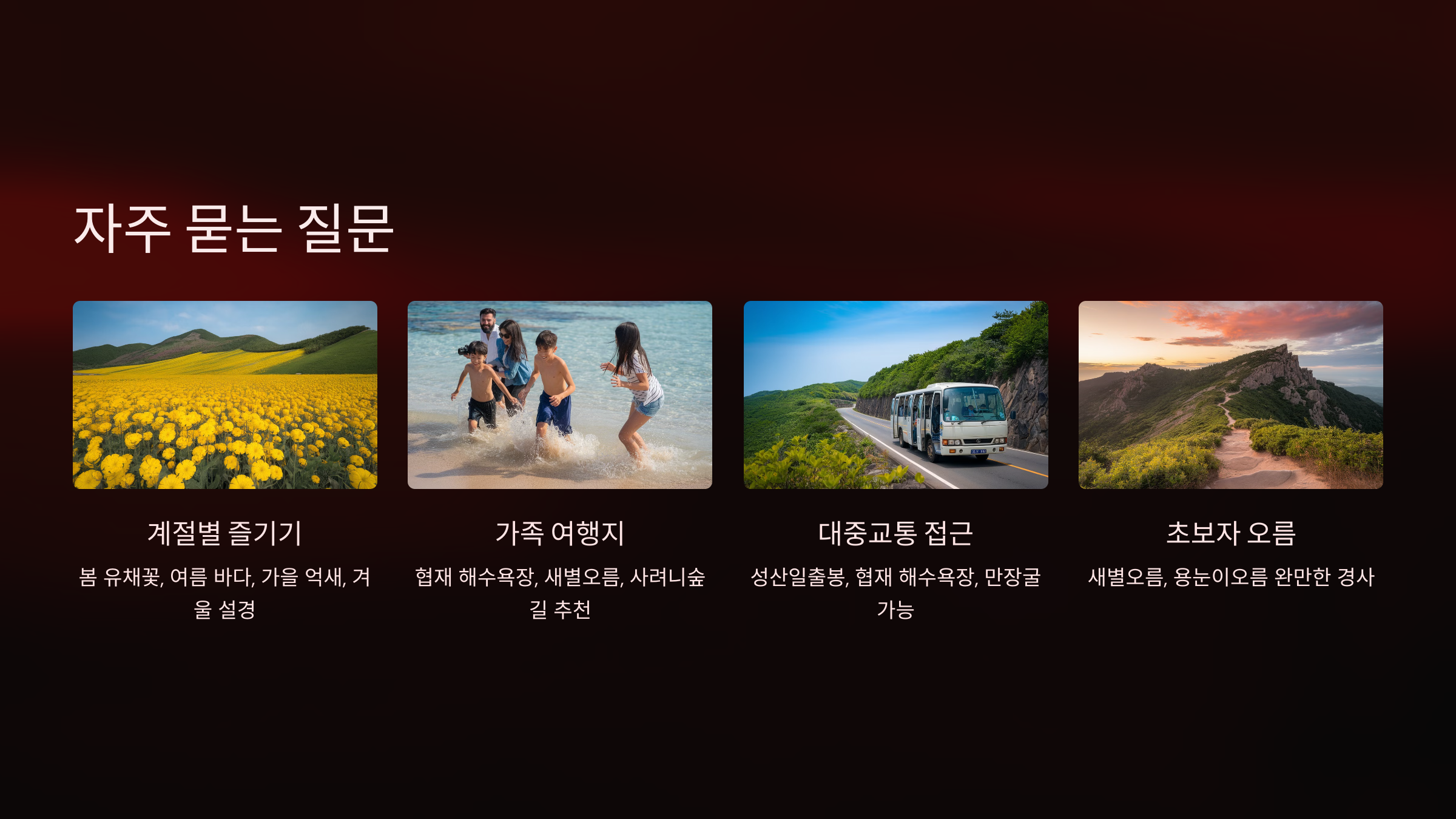 Q1. 제주 자연 명소는 계절마다 다르게 즐길 수 있나요?