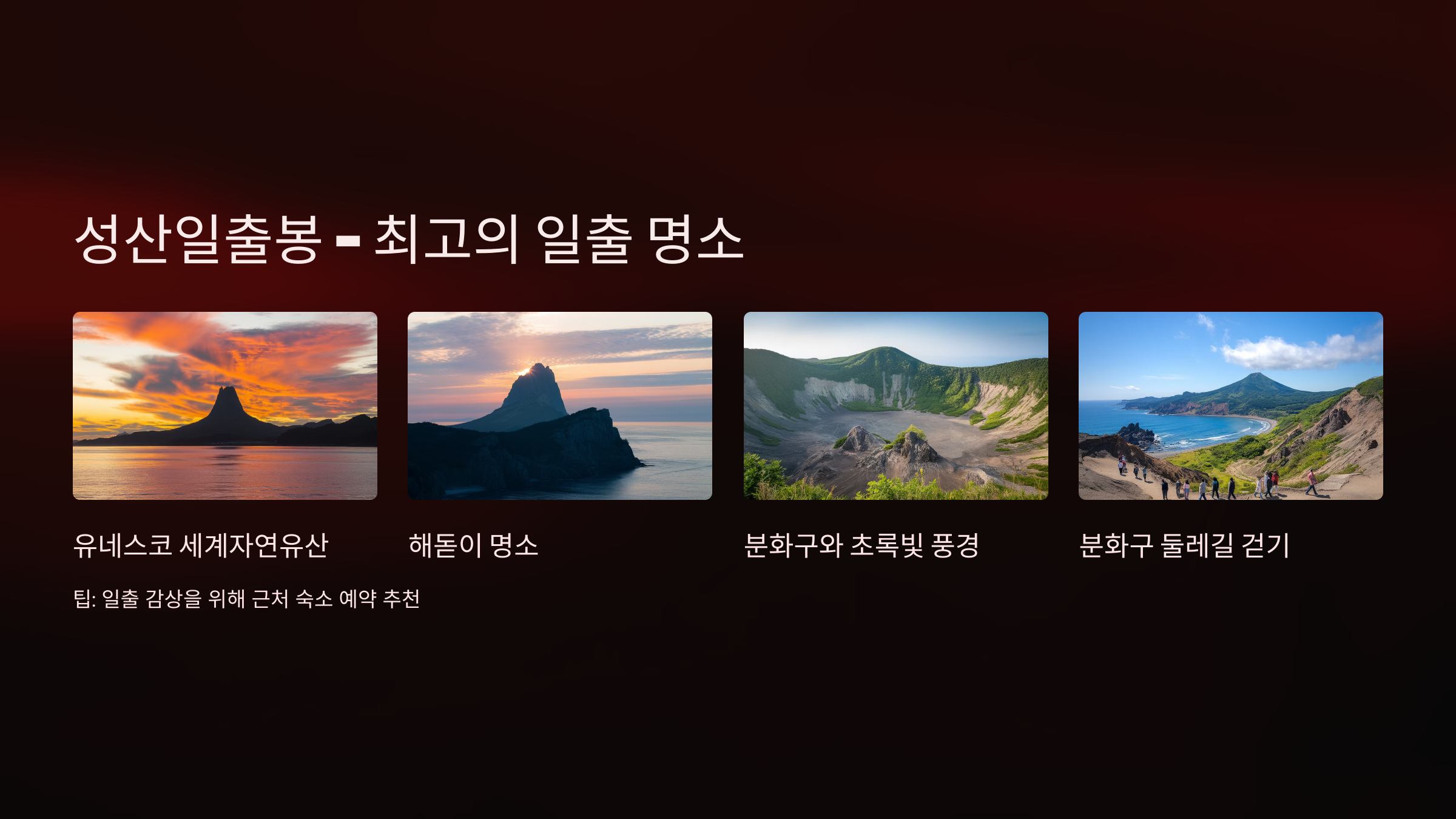 - 팁: 일출을 보려면 이른 새벽에 도착해야 하니 전날 숙소 위치를 가까운 곳으로 잡는 걸 추천합니다. 🌅
