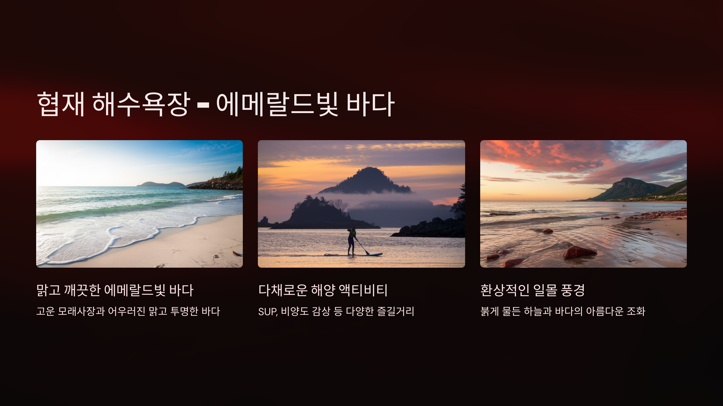 - 팁: 일몰 시간에 방문하면 하늘과 바다가 붉게 물들어 환상적인 장면을 감상할 수 있습니다.