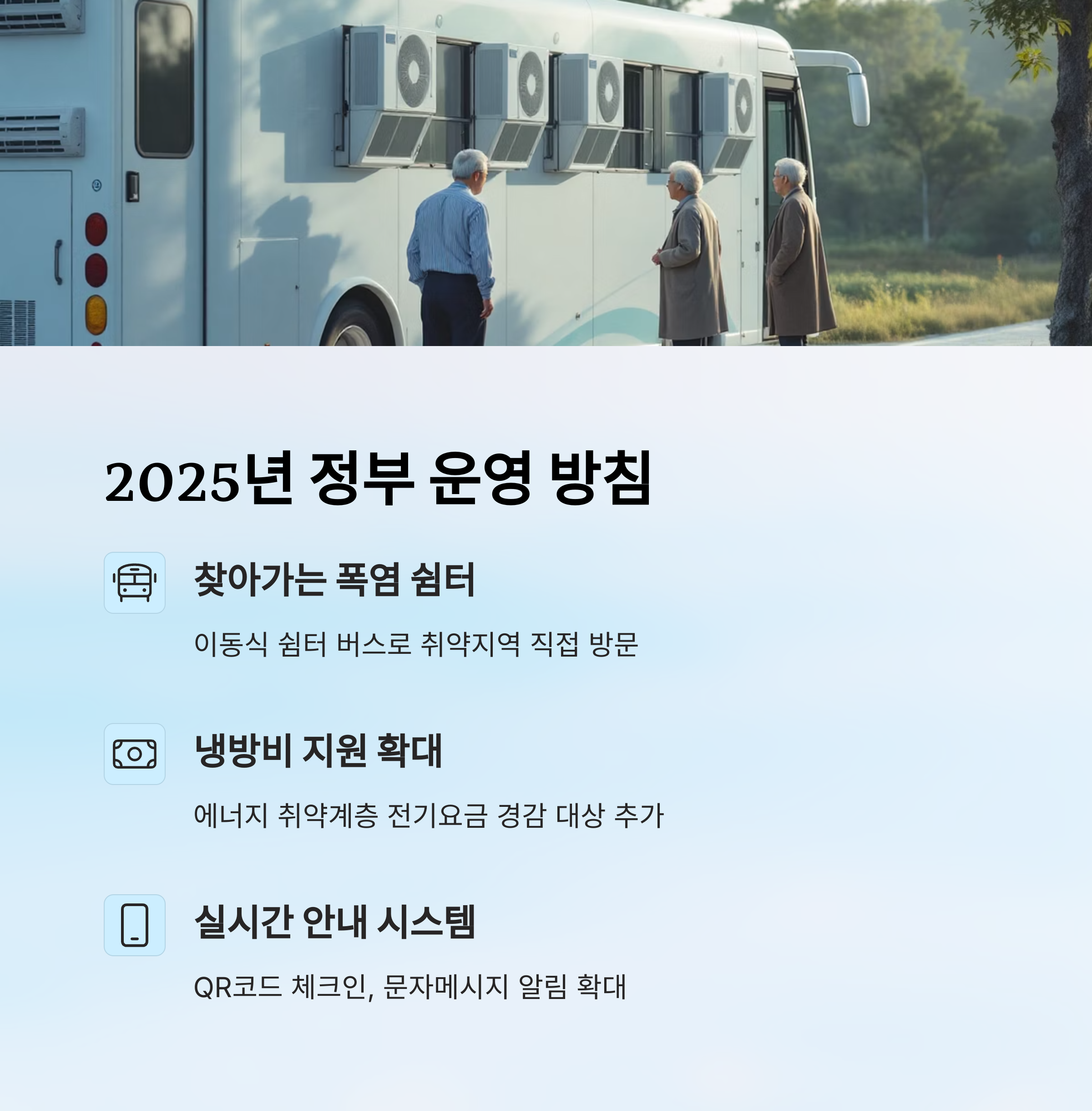 정부는 또 에너지 취약계층을 위해 ‘냉방비 지원 대상’을 확대했어요. 기초생활수급자, 차상위계층 외에도 여름철 한시적으로 전기요금 경감 대상이 추가될 예정이에요. 이로 인해 자택에서도 일정 수준의 냉방은 가능해졌다는 평가도 있어요.
