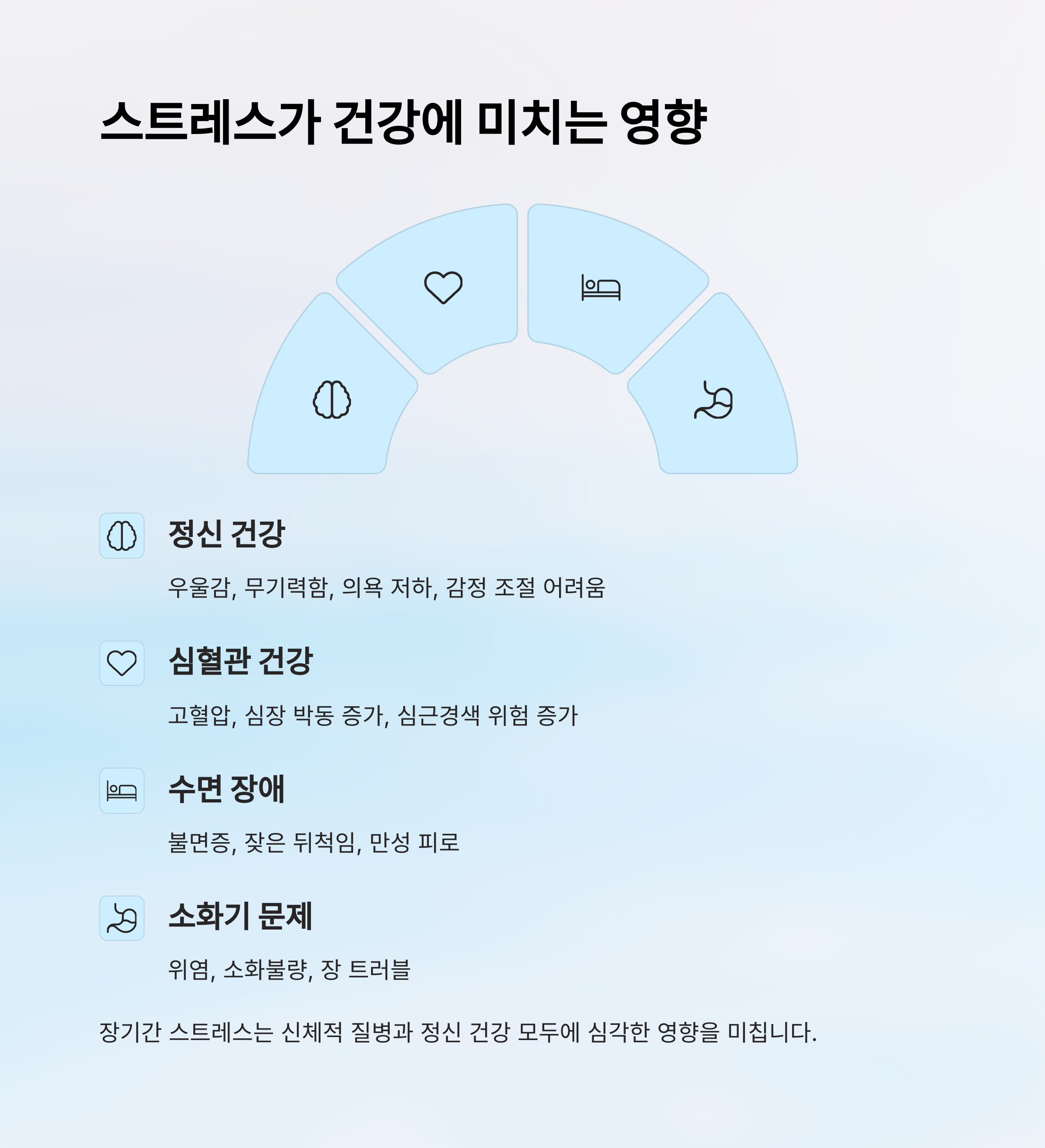 마음의 건강에도 큰 영향을 줘요. 스트레스를 지속적으로 받으면 우울감이 깊어지고, 무기력해지며, 일에 대한 의욕 자체가 사라지기도 해요. 때로는 작은 일에도 짜증이 나거나, 누군가 말 한마디에 예민하게 반응하게 돼요. 이는 감정 조절 능력이 약해졌다는 신호일 수 있어요.