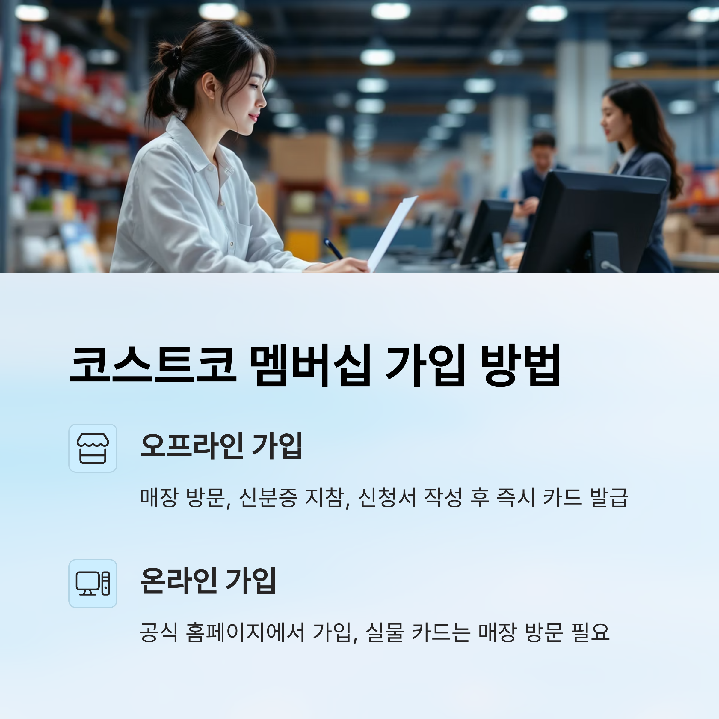 코스트코 멤버십은 오프라인 매장 방문 또는 온라인 홈페이지를 통해 가입할 수 있어요. 각각의 방식에 따라 절차와 준비물에 약간의 차이가 있으니 아래 내용을 참고해 주세요.