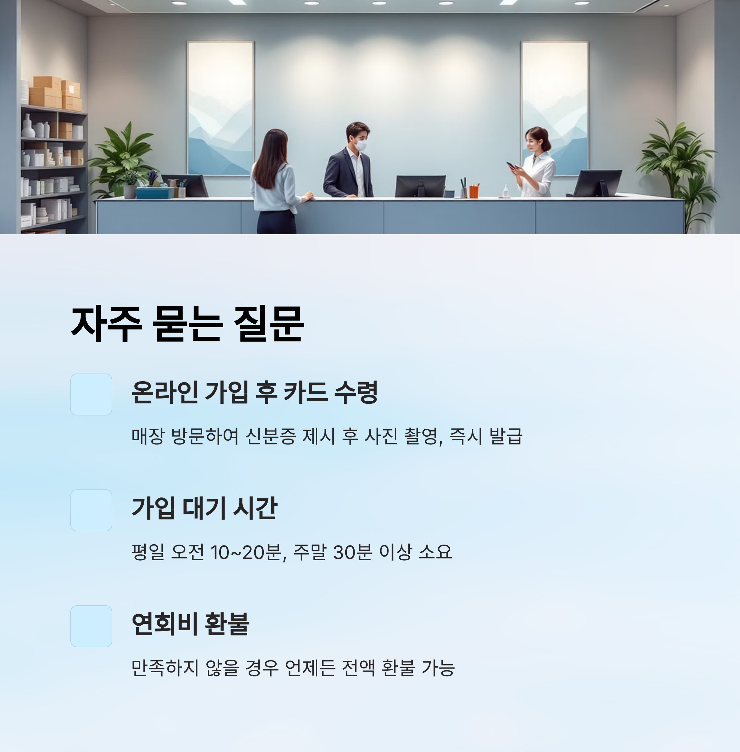 오프라인은 평일 오전이 가장 한산하니, 대기 시간 줄이고 싶다면 이 시간대를 추천드려요. 온라인은 언제든 가입 가능하니 자기 일정에 맞게 조정하면 돼요.