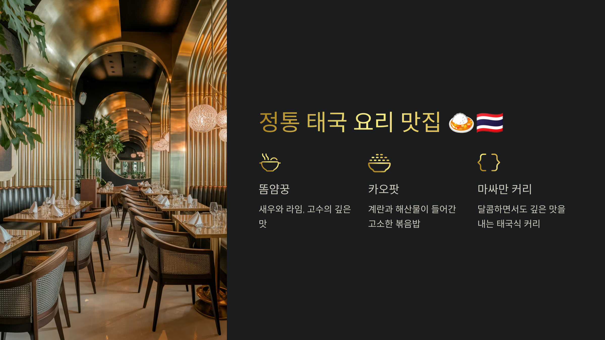 방콕에서는 길거리 음식뿐만 아니라, **고급스러운 태국 전통 요리를 맛볼 수 있는 레스토랑**도 많아요! 현지인들도 추천하는 **방콕 정통 태국 요리 맛집**을 소개할게요. ✨