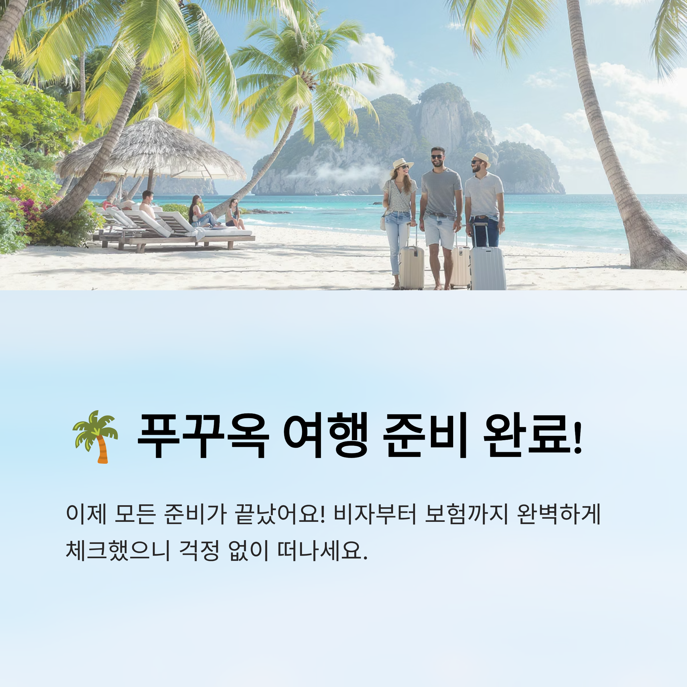 이 글에서는 푸꾸옥 자유여행을 준비하면서 꼭 알아야 할 실용적인 정보만 쏙쏙 뽑아 소개할게요. 특히 ‘준비 끝!’이라는 말이 딱 어울릴 만큼, 필요한 정보는 전부 들어 있어요. 여행자 보험부터 환전 팁, 교통편까지 완전 정복하는 느낌으로 알려드릴게요. 제가 생각했을 때 여행 전에 꼭 봐야 할 필수 가이드라고 자신 있게 말할 수 있어요! ✨