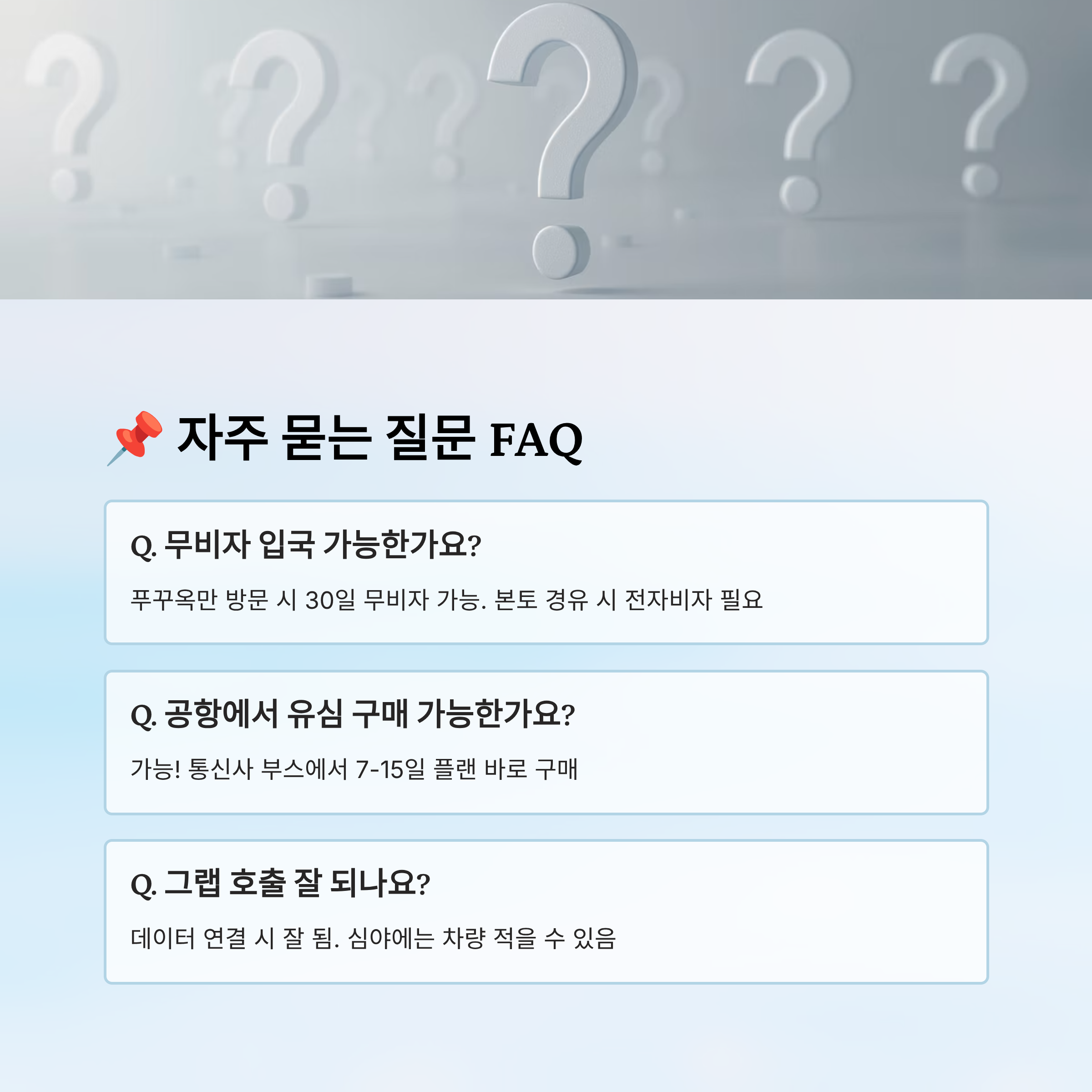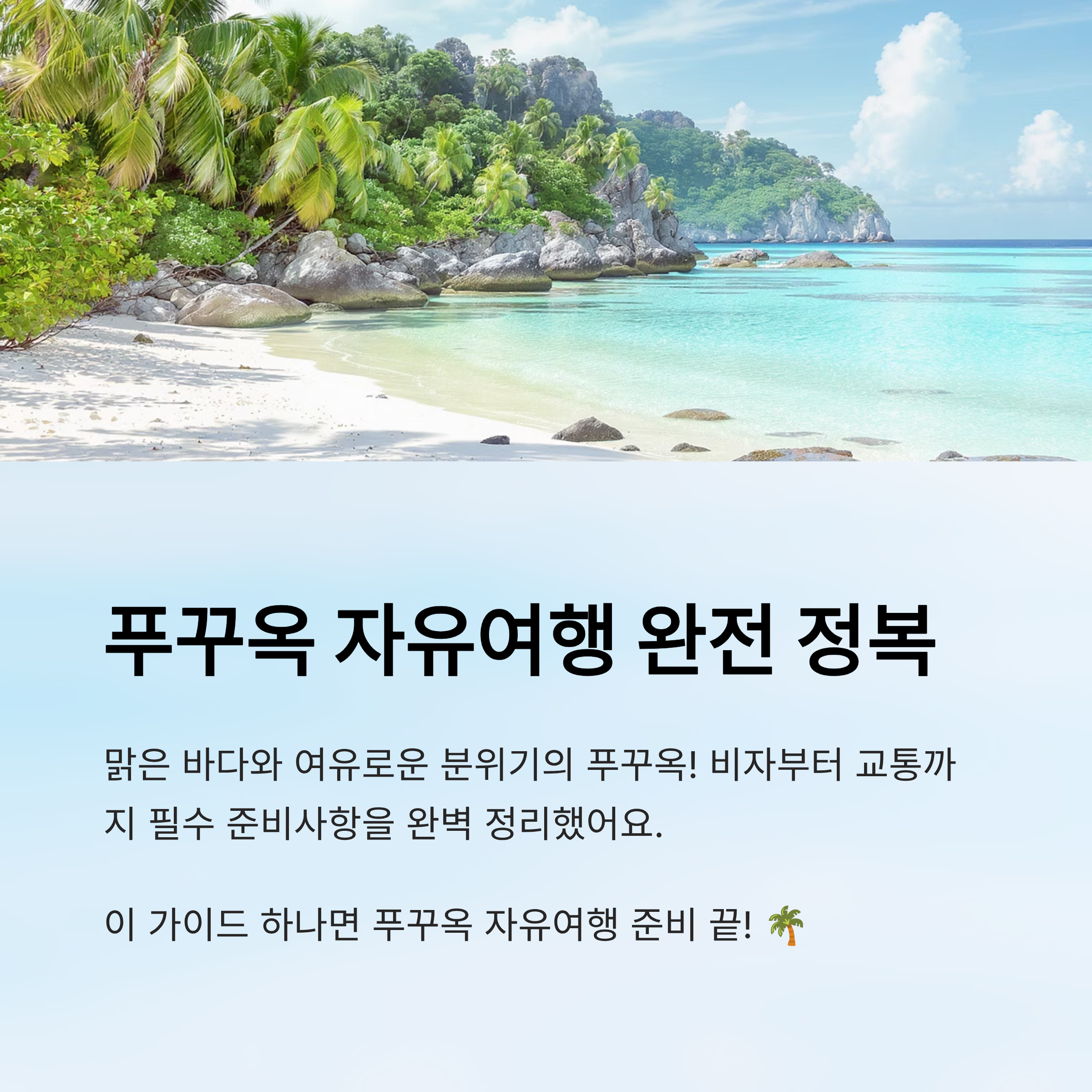 푸꾸옥은 요즘 뜨는 동남아 인기 여행지 중 하나로, 맑은 바다와 여유로운 분위기가 매력적인 섬이에요. 특히 자유여행을 선호하는 분들에게는 더욱 매력적인 곳이죠. 하지만 출국 전에 비자, 유심, 환전, 교통 등 필수 정보를 미리 알고 가야 현지에서 당황하지 않고 여유로운 여행이 가능하답니다.