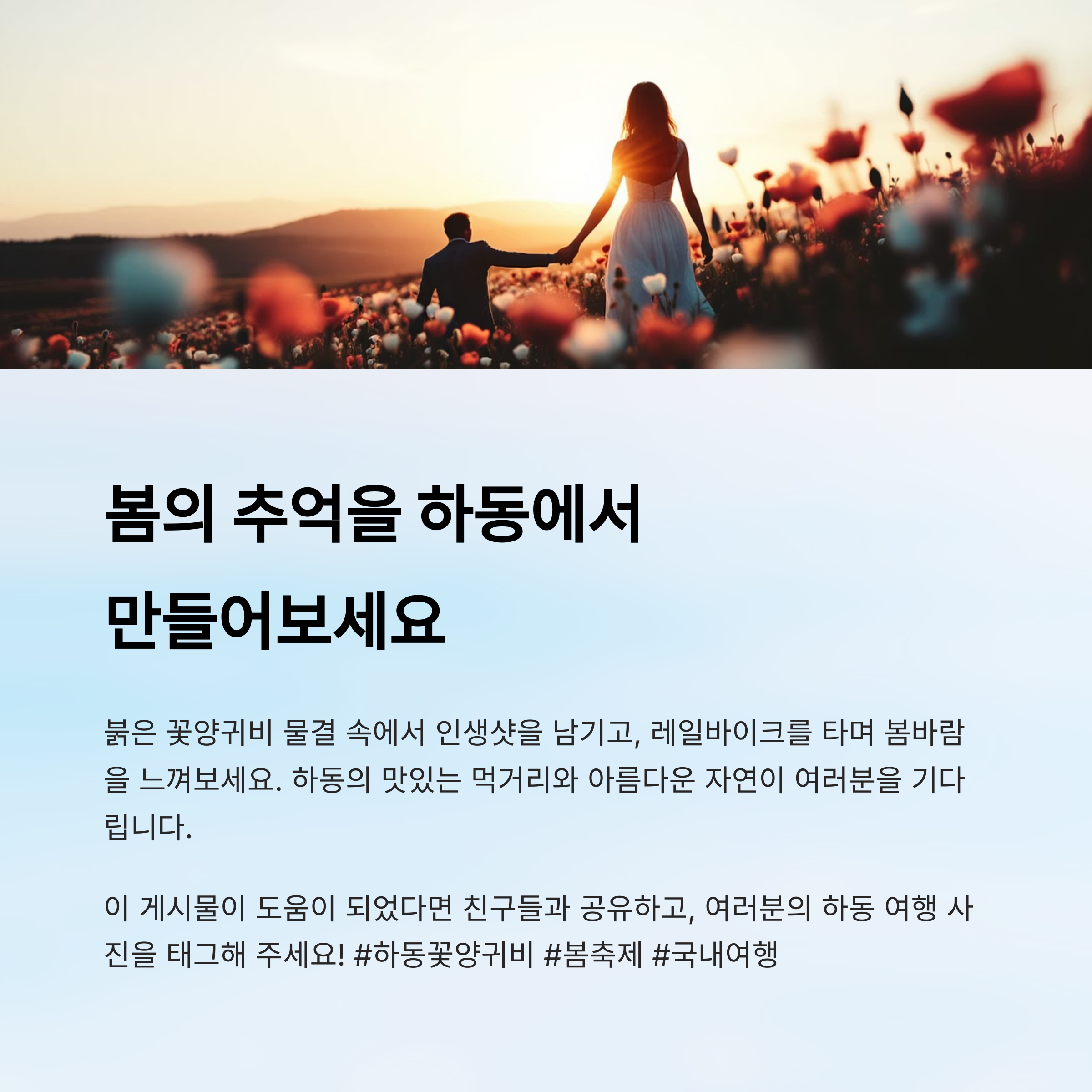 이렇게 다양한 포인트를 잘 활용하면 누구나 전문가처럼 멋진 사진을 남길 수 있어요. 📸 올해 봄, 하동에서 가장 감성 넘치는 인생샷을 만들어보세요!