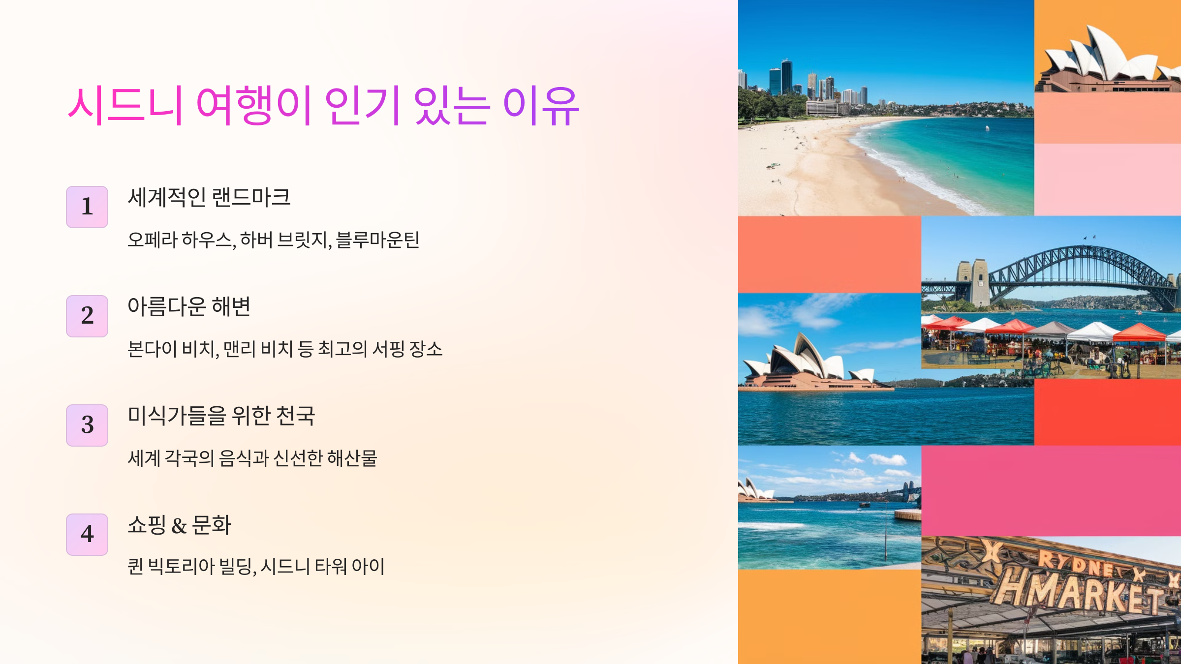 이 가이드를 참고하면 **시드니 여행이 더욱 특별하고 완벽해질 거예요!** 😊✈️