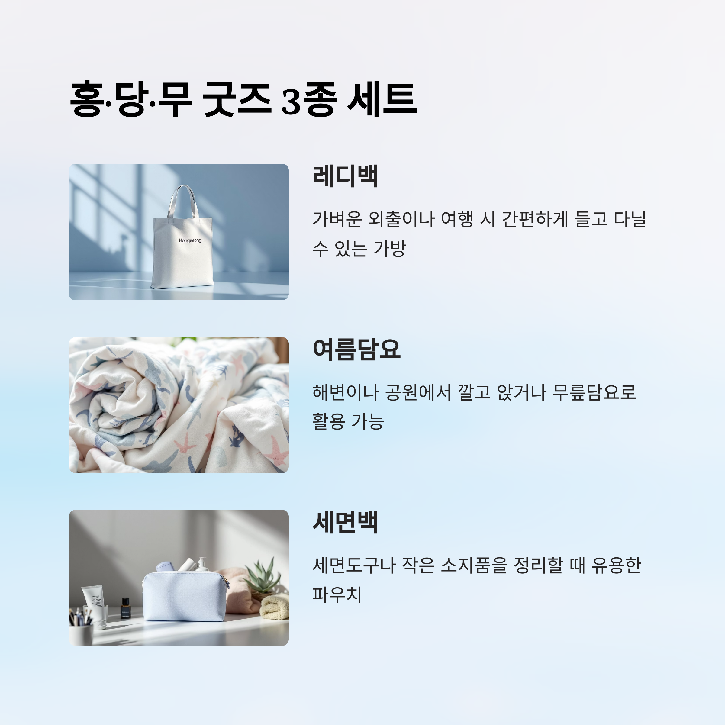 🎒 홍·당·무 굿즈 3종 구성표