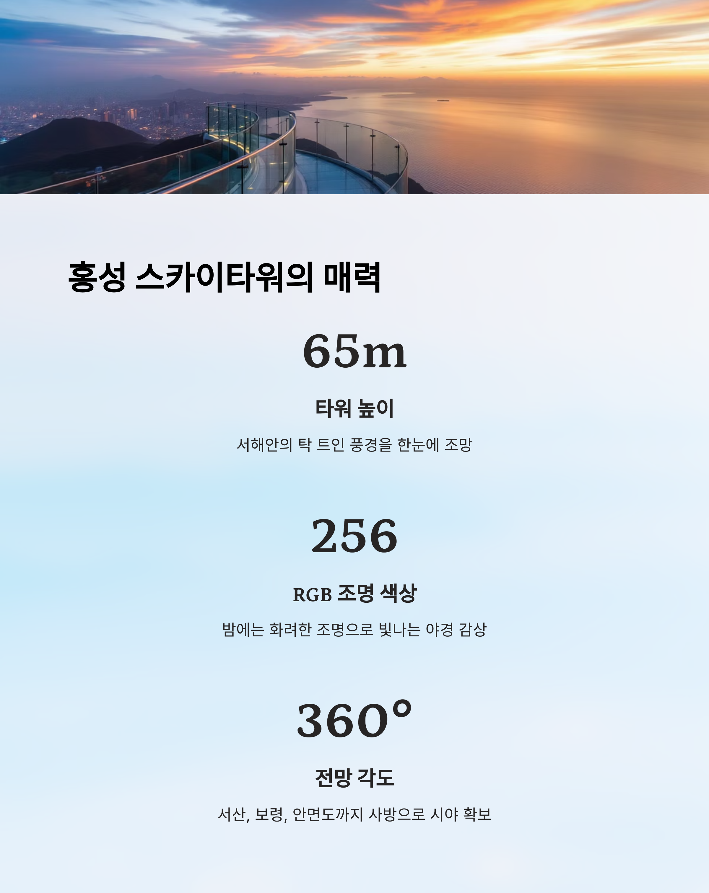 | 홍성 스카이타워 | 65m 높이에서 서해 일몰 감상 | 스카이워크 & 노을 포토존 |