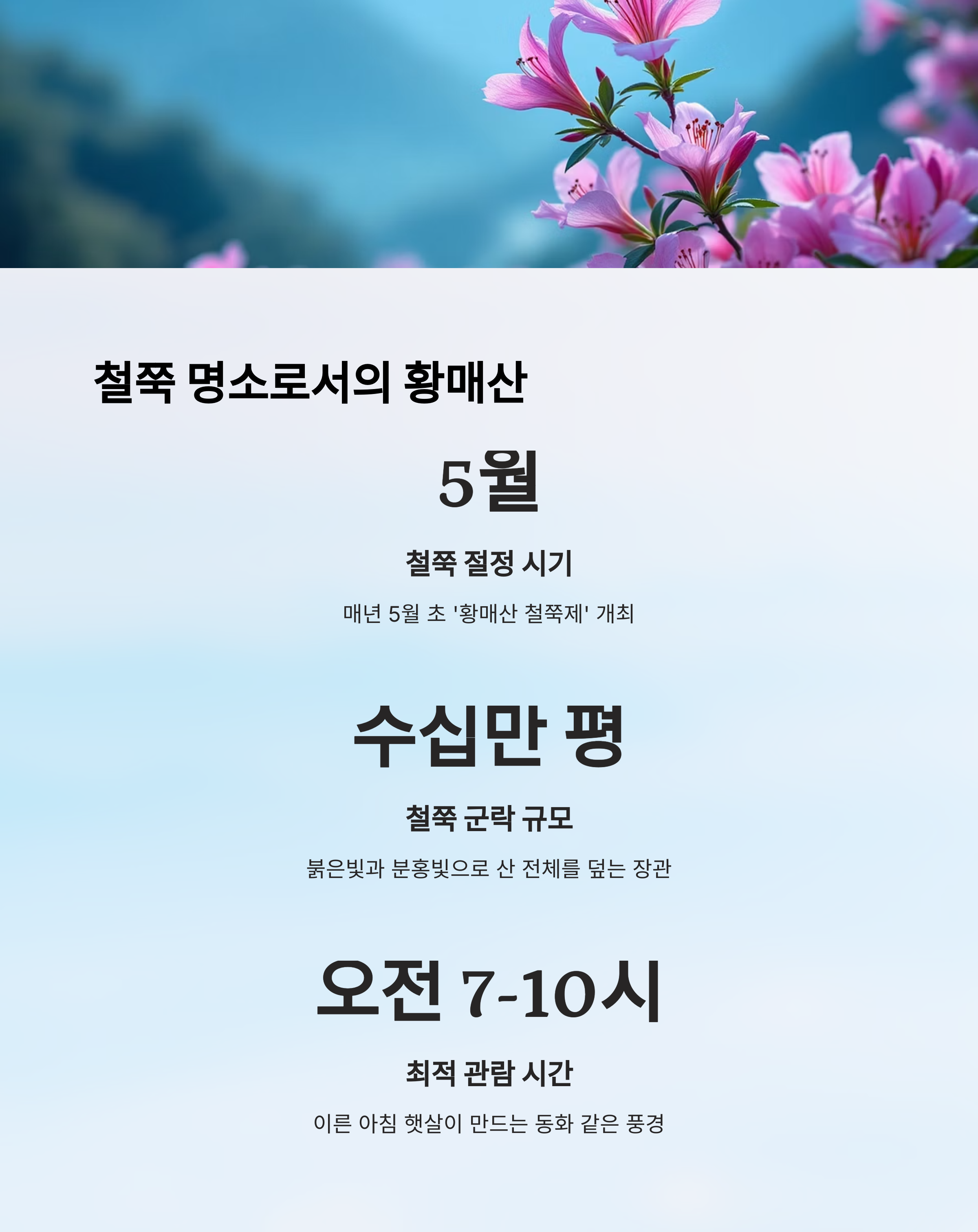 | 철쭉 개화 시기 | 4월 말 ~ 5월 중순 |